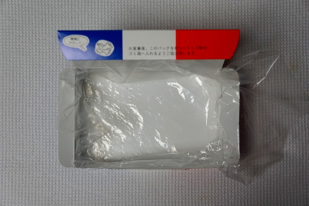2015(平成27)年9月5日に購入した、静岡駅弁の紙箱。上記の2023年のものと同じ。違いを探せば、価格、食品表示ラベルの形式、おてふきの形状。
