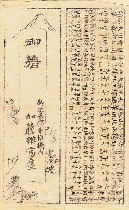 1925(大正14)年7月25日5時の調製と思われる、昔の静岡駅弁の掛紙。静岡市街に現存する、静岡浅間神社を描く。