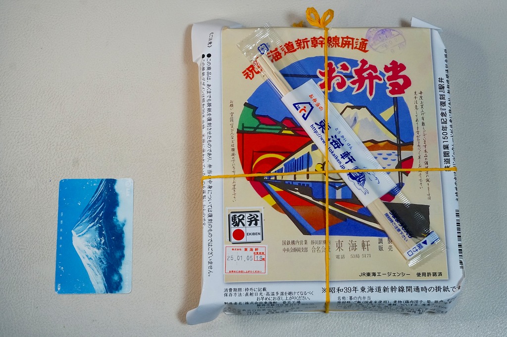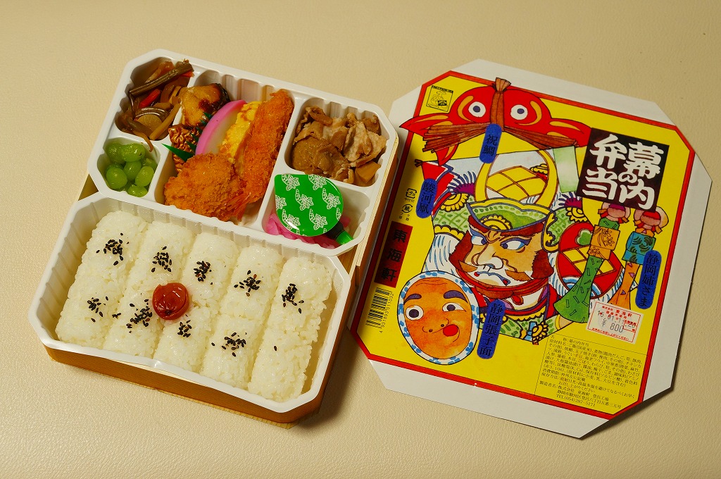 2025(令和7)年1月の京王百貨店の駅弁大会で輸送販売。大会での商品名は「昭和39年東海道新幹線開通時の掛紙幕ノ内弁当」。「東海道新幹線沿線の駅弁が勢ぞろい!」として、東京駅や京都駅などで現役の弁当や、新幹線電車型容器の駅弁に、小田原駅と静岡駅と名古屋駅と新大阪駅で復刻掛紙を使う弁当を販売した。これは静岡駅バージョンで、1964年の東海道新幹線開通時の駅弁掛紙を復刻した。これは下記のとおり2022年に現地で買えたものと、「JR東海エージェンシー使用許諾済」の表記を除いてまったく同じだった。容器と中身と価格は静岡駅で現役の幕の内弁当と同じ。