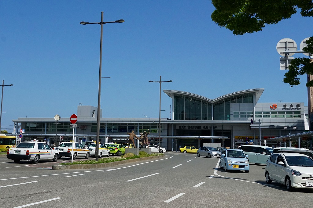 静岡駅から電車で3駅10分。清水市はかつて、静岡県の中部で太平洋の駿河湾に面する人口20万人以上の港町で、日本平や美保の松原の美景、次郎長、サッカーなど独特の文化を持っていたが、2003年に静岡市と合併してしまい、今は静岡市清水区。駅弁は1953(昭和28)年から売られたが1990年代に撤退。駅のキヨスクに入荷する地元の寿司店の商品が、まれに駅弁と紹介される。1889(明治22)年2月1日開業、静岡県静岡市清水区真砂町1−1。