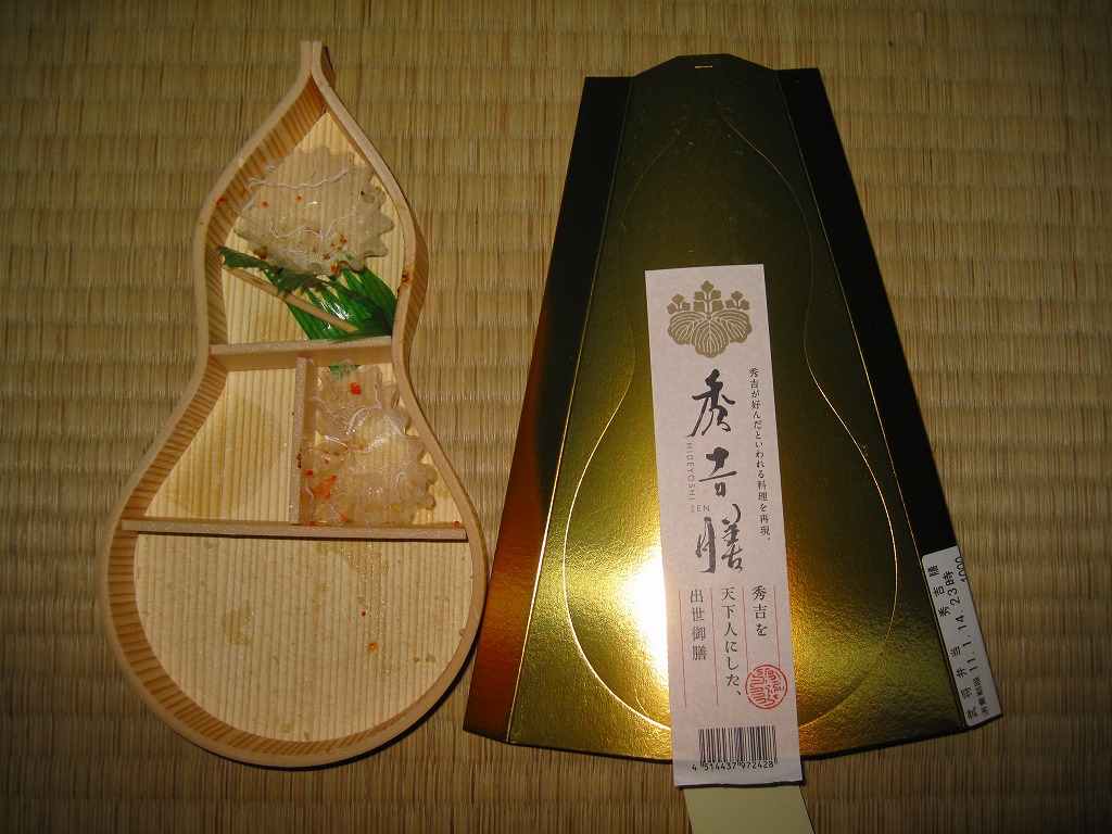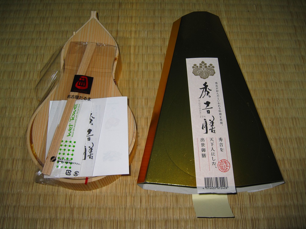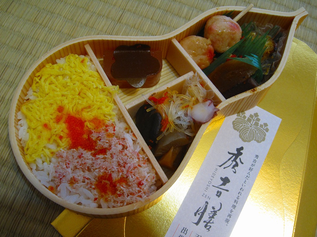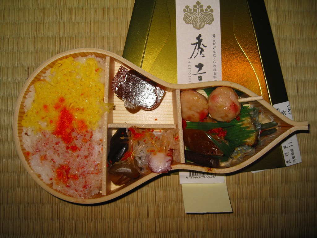 名古屋開府400年を記念して、そして戦国時代の三英傑にちなむ駅弁の続編として、2010(平成22)年3月6日に発売。木目柄でヒョウタン型の容器を、金色のボール紙製パッケージに収める。中身は酢飯の上に錦糸卵ととびことカニほぐし身を載せ、タラ焼、鶏照焼、魚のすり身の串、山菜、守口漬、シイタケやタケノコなどの煮物、タコ春雨、花煮昆布、ようかんなど。