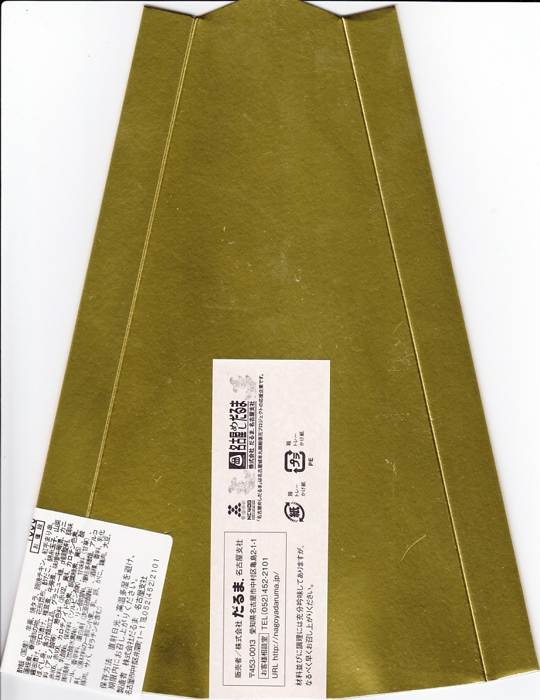 1960年代の調製と思われる、昔の名古屋駅弁の掛紙。おこわに「強飯」の括弧書きを加えるのは、当時はそのほうが分かりやすかったのか、今の感覚では逆に思える。