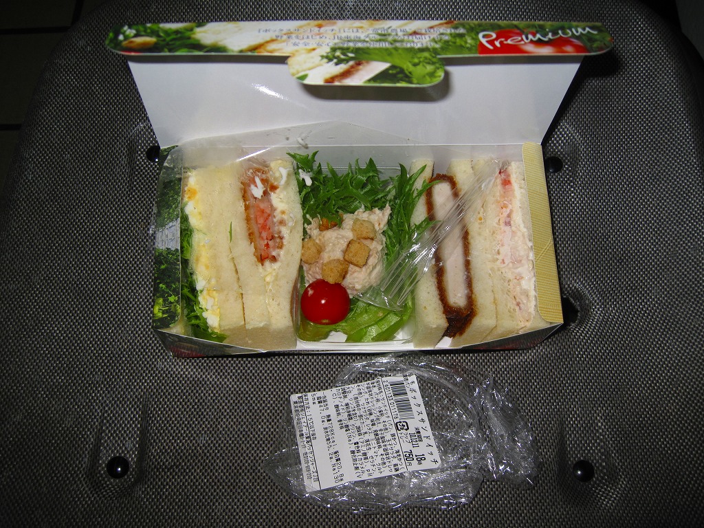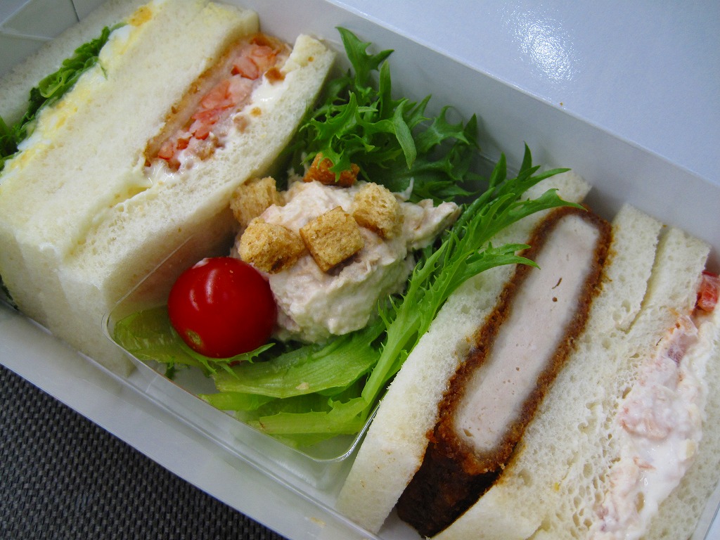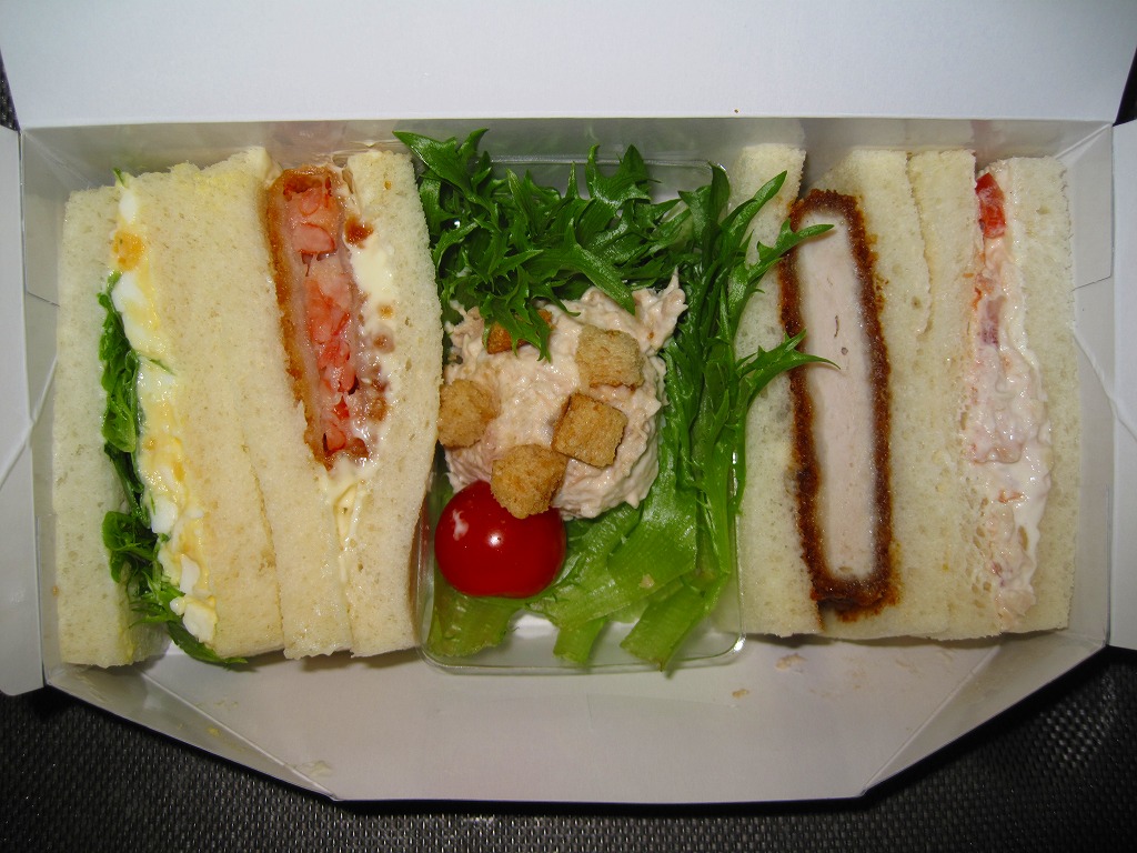 2010(平成22)年4月1日に発売。中身のイメージ写真を印刷した専用のボール紙箱に、レタスとタマゴのサンド、タルタルソースの海老カツサンド、味噌だれのトンカツサンド、蒸し鶏のオニオンソース和えとミニトマトのサンド、クルトンとミニトマトのツナサラダを収めるもの。少量で高価だと思うが、野菜の新鮮な色彩が清々しいし、箱も含めて見栄えがする。
