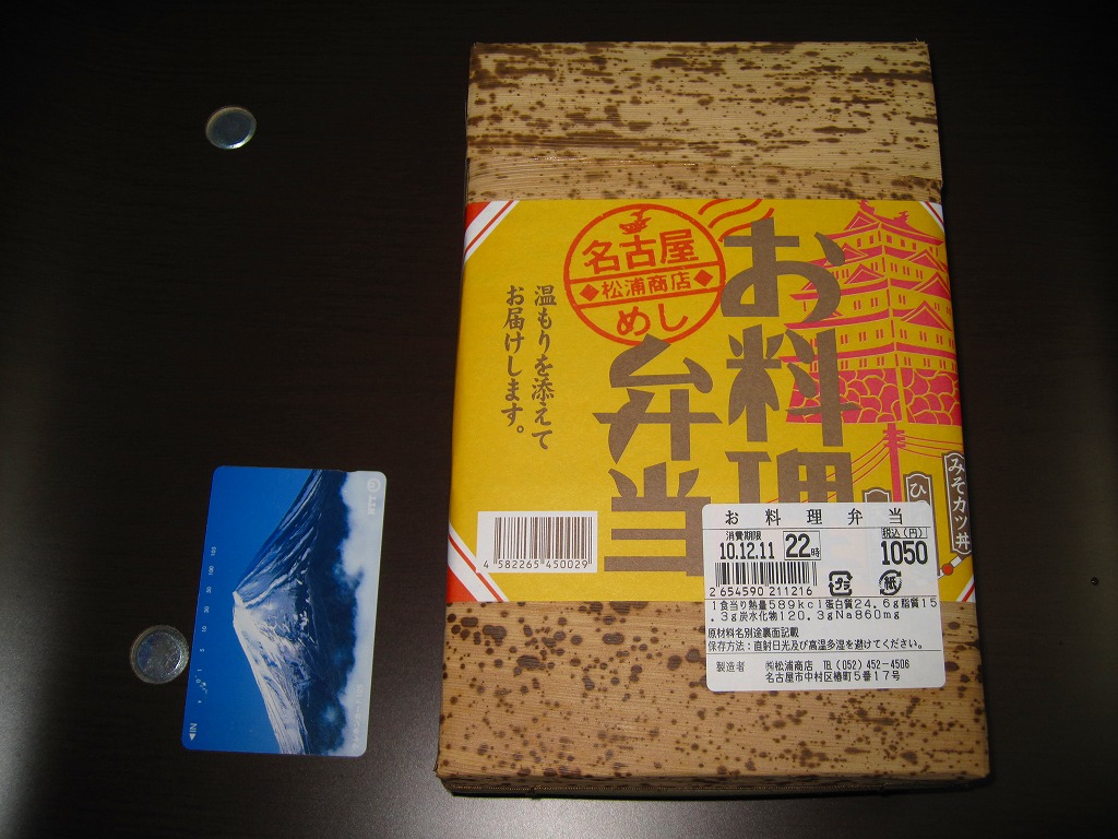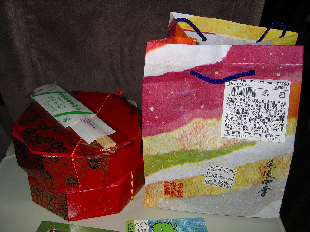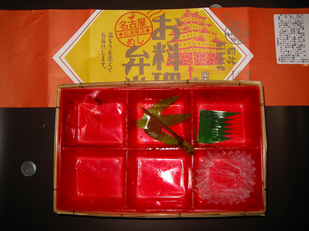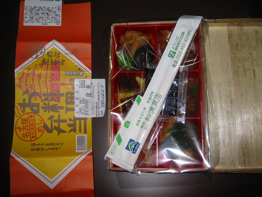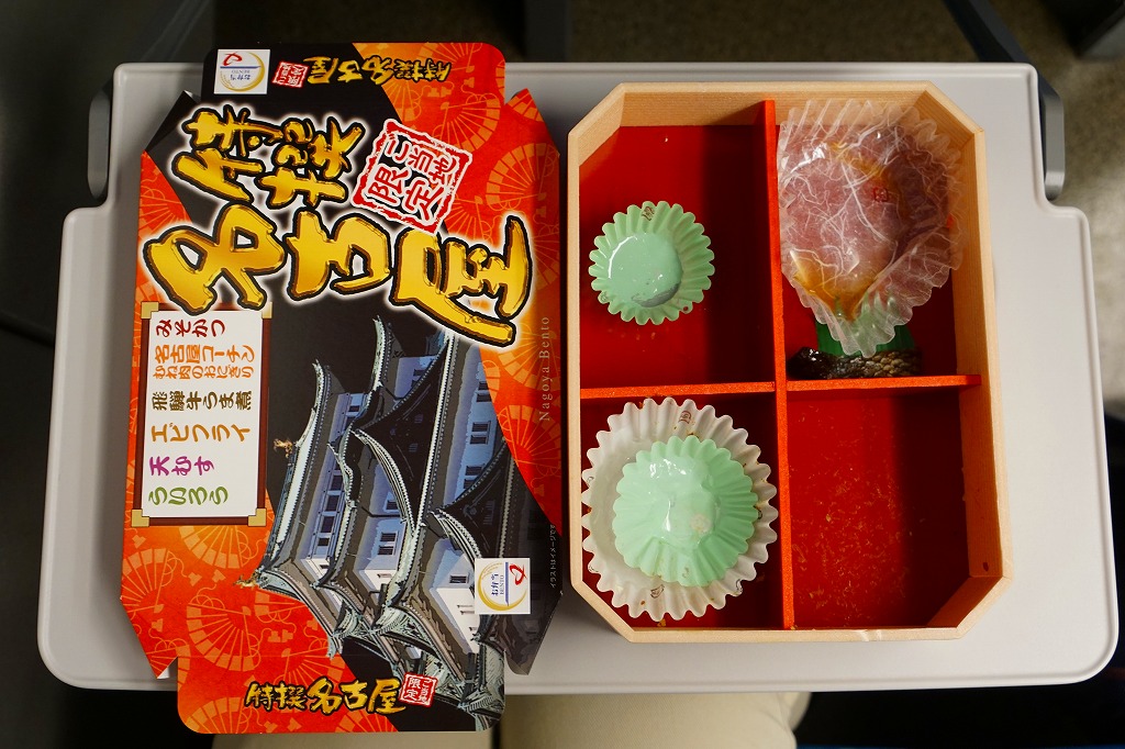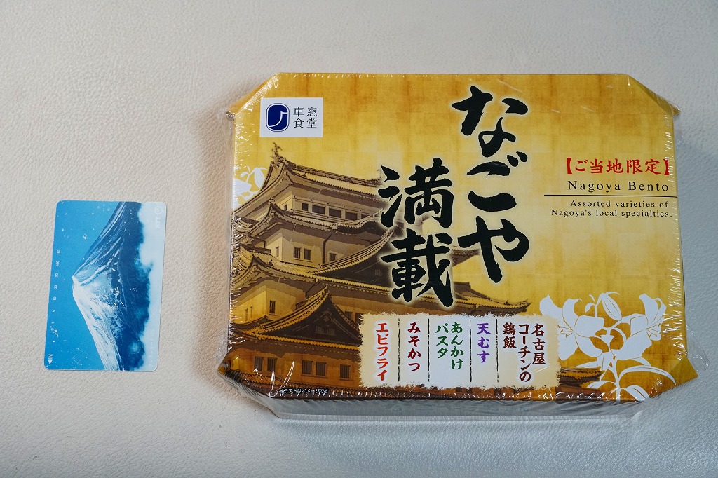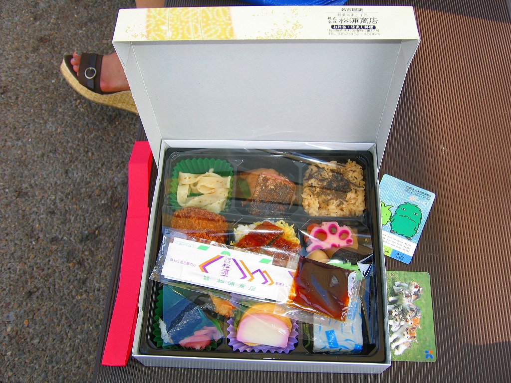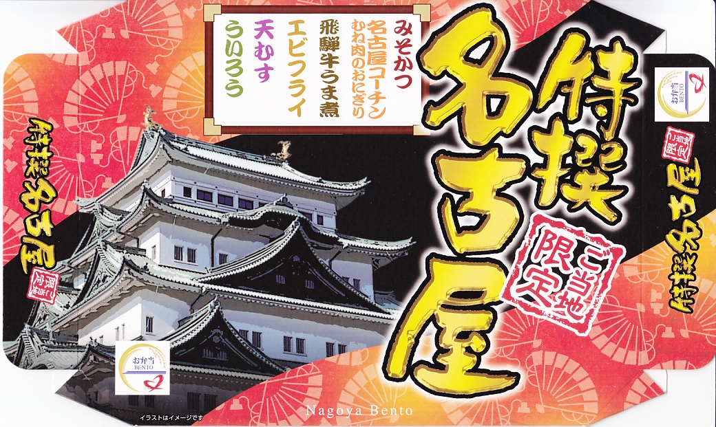 名古屋駅の普通駅弁。黒い9区画プラ製トレーを入れた正方形のふた付きボール紙容器を赤い紙帯で留める。中身はひつまぶし風鰻重、天むす風海苔巻、きしめんサラダ、鶏飯、みそカツ、ういろうなど。名古屋を主張する内容で、価格なりの風味と品質がある。パッケージには名古屋の絵柄も駅弁マークも入らないが、代わりに愛知万博JR東海リニア館のマークが入っていた。