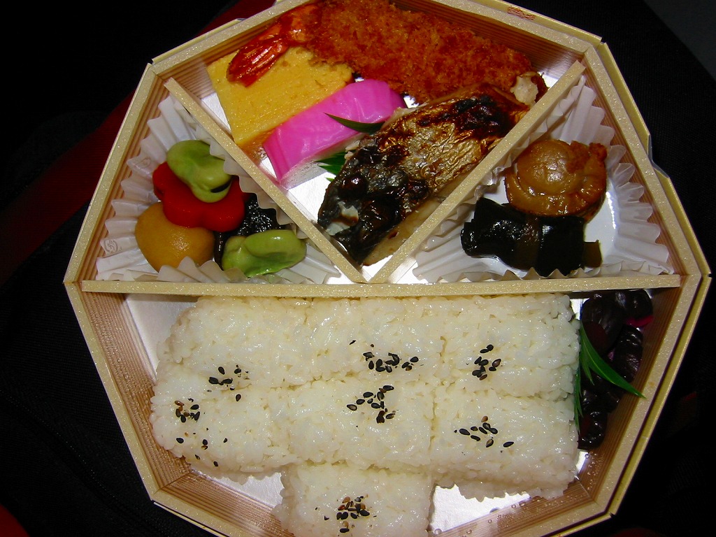 名古屋駅の無名なJRCP版上等幕の内駅弁。カキツバタの花を描いた長方形ボール紙容器を使用、中身は日の丸俵飯に焼鮭・蒲鉾・玉子焼、白身魚フライに鶏竜田揚、菜の花にゴボウにてまり串に煮物や付合せの各種など。意外と言っては失礼だが高品質な幕の内駅弁で、新幹線の車中食としても酒のつまみとしても使える出張の友。現存しない模様。