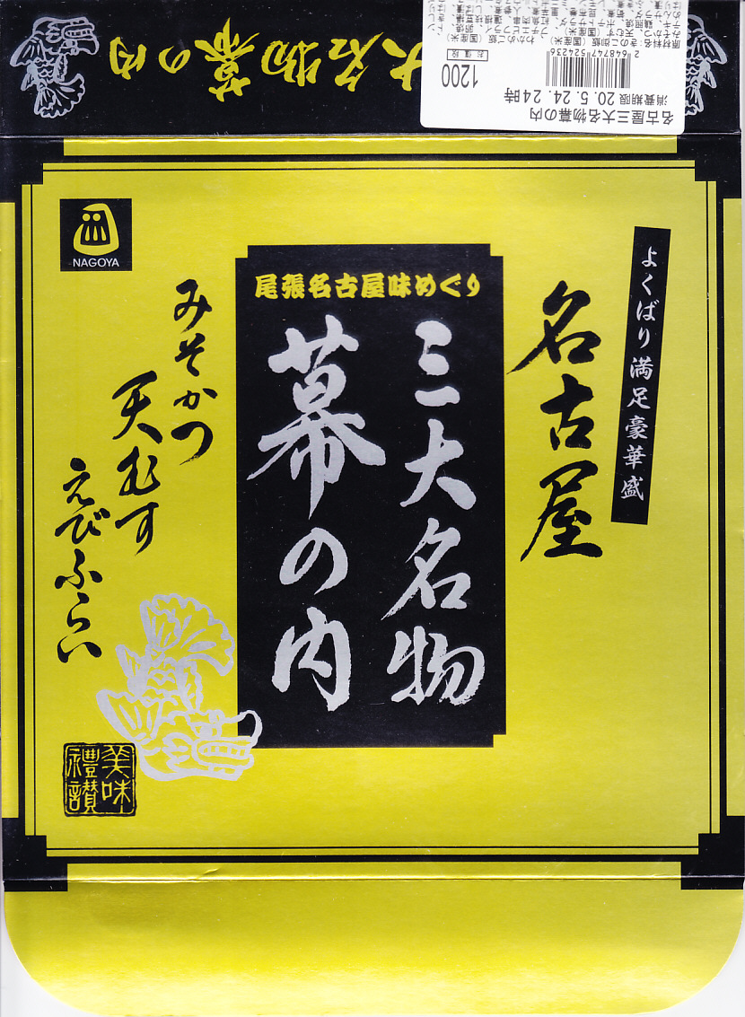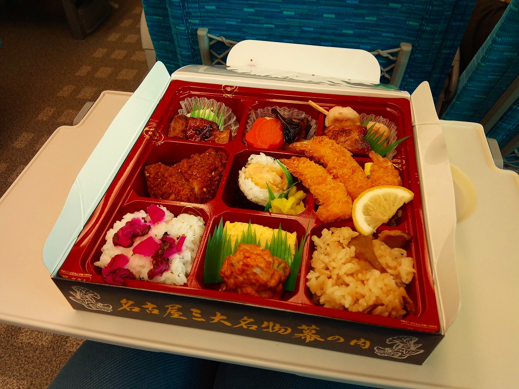 駅弁の名前は単に「なごや」とも。名古屋駅の幕の内弁当の、松浦商店版。正八角形の容器の半分に俵飯を、半分におかずとして、タケノコやシイタケなどの煮物、玉子焼に紅白のかまぼこと海老、焼きサバにチキンロール、アナゴ八幡巻にカニカマフライに磯扇フライなどを詰める。名古屋の濃い目の味付けで白いご飯が進む内容で構成したという、眺めて食べて美しい正統派の幕の内駅弁。「幕の内こだま」がカジュアルならば、こちらはフォーマル。価格は2012年の購入時で1,000円、2014年4月の消費税率改定で1,030円、2016年時点で1,050円、2022年時点で1,080円、2023年時点で1,150円、2024年時点で1,190円、2025年時点で1,240円、9月の購入時で1,320円、12月時点で1,380円。