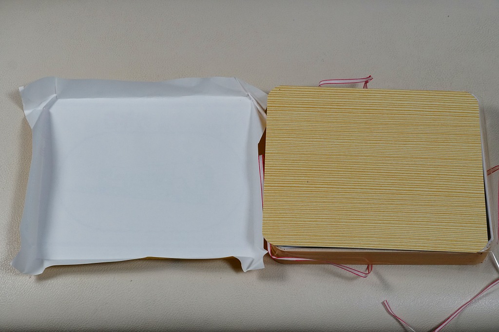 2010(平成22)年12月11日に購入した、名古屋駅弁の掛紙。中身は上記の2021年のものと同じ。当時に4種類が日替わりで使われたという掛紙は、この時は「時刻改正の掛紙」に該当。そのデザインから、時刻表の表記が午前午後の12時制から現在の24時制に変わった1942(昭和17)年11月15日のダイヤ改正のものではないかと思う。