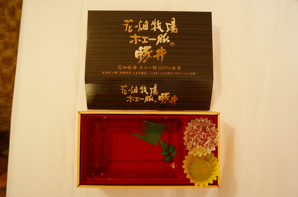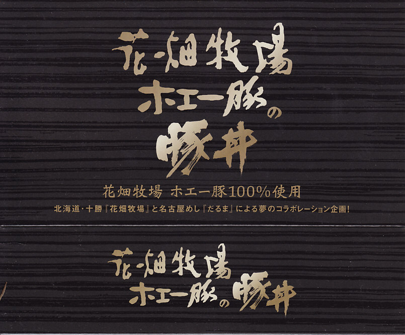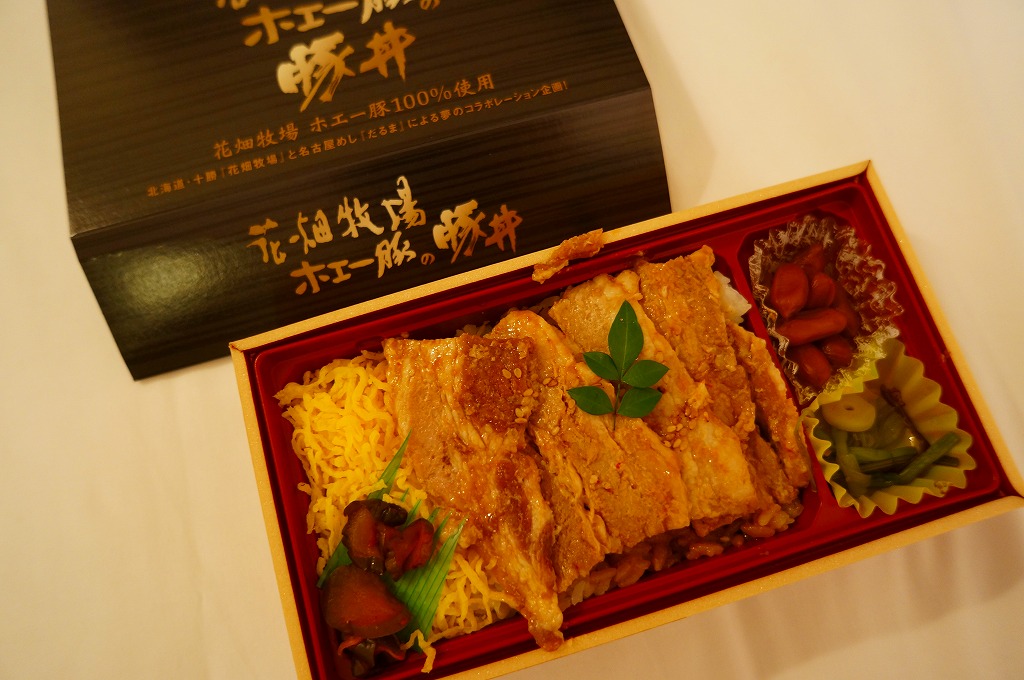 2011(平成23)年6月22日に中部国際空港で、メディア上で暴れる花畑牧場と名古屋の駅弁屋でもある調製元との「コラボ商品」として発売。赤いプラ製トレーを接着した長方形の容器に透明なふたをして、商品名を書いた黒いボール紙の枠にはめる。中身は白御飯の上を豚焼肉と錦糸卵で覆い、山菜醤油漬と落花生煮と柴漬けを添えるもの。