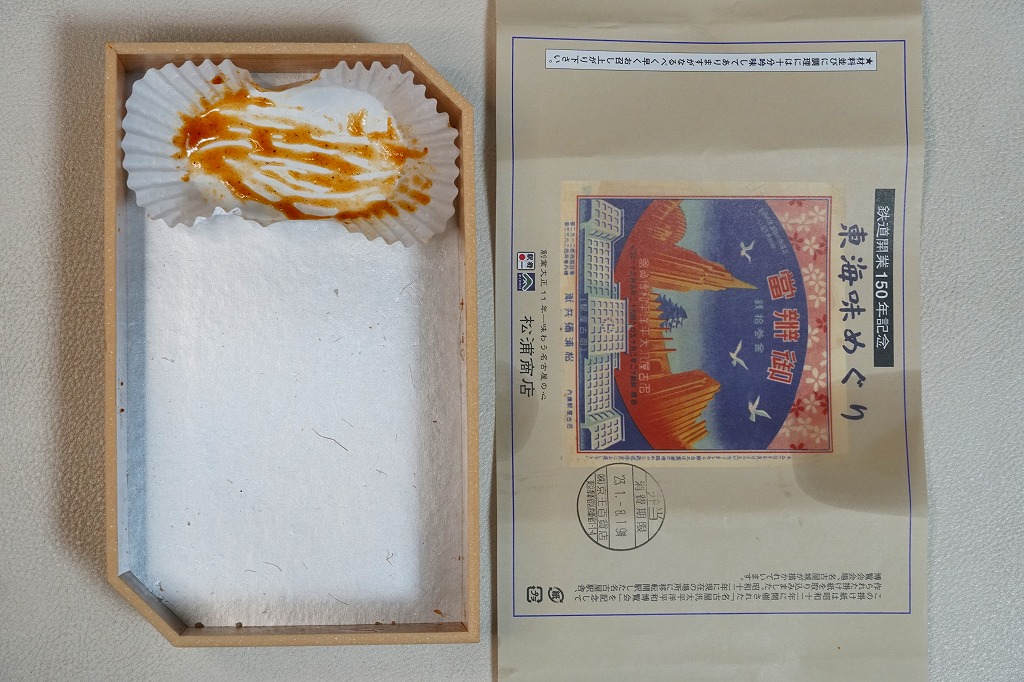2016(平成28)年の発売か。白飯を牛焼肉で覆い、こんにゃくの梅和えとワサビ菜お浸しを添える、シンプルな牛丼。名古屋駅の松阪牛駅弁でブランド牛を思わせる風味や品質を備えたものに当たったことがなく、今回も同じ印象。ごくごく並の牛肉駅弁だった。価格は2016年の発売時で1,300円、2020年の購入時で1,340円、2022年時点で1,390円、2023年時点で1,480円、2024年時点で1,490円、2025年時点で1,530円。
