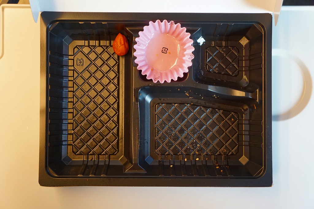 エビフライは確かに大きく、衣で増量せず身での大きさがある。「びっくりみそかつ」に続きインパクトのある商品が誕生した感じ。パッケージには「三河安城駅」の表記が見えるが、現地ではこれからどこでどのように販売されるのだろうか。価格は2011年の購入時で1,100円、2014年時点で1,220円、2019年時点で1,130円。2019年頃までの販売か。