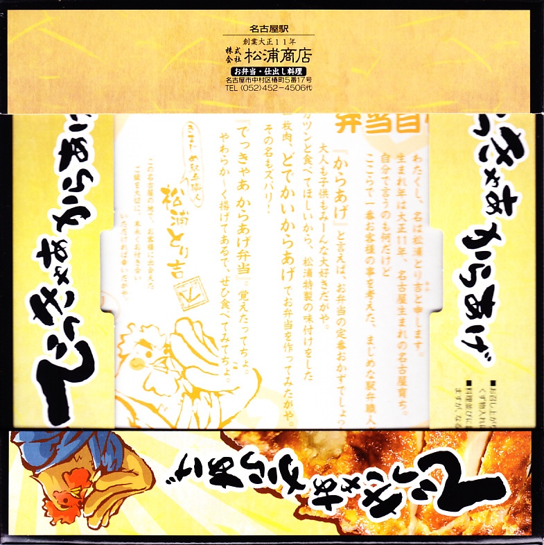 大きな鶏唐揚を詰めた幕の内駅弁であり、まるでステーキか何かのようにカットされた揚げ鶏が印象的で、きっとみんなそう思っている。価格は2004年時点で750円、2014年時点で780円、2016年時点で800円、2019年時点で870円、2020年時点で880円、2022年時点で920円、2023年時点で980円、2024年時点で1,000円、2025年時点で1,050円。