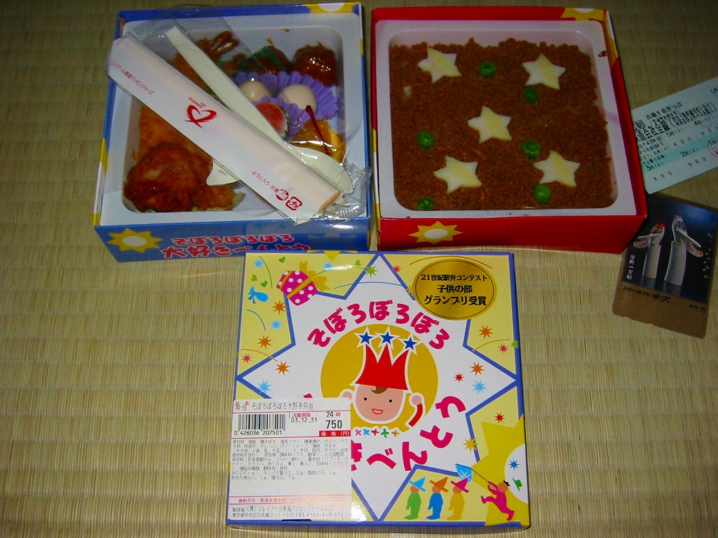パッケージを中心に中身でも子供向けをアピールするが、分量は少なくないので大人向けとしても使える。または割りばしとプラスティック製スプーンがひとつずつ付いているので、小さな子供とその親が分けて食べることを想定しているのかもしれない。2005年にモリゾー柄とキッコロ柄のかまぼこを入れた「万博バージョン」を売り、そのまま終売か。