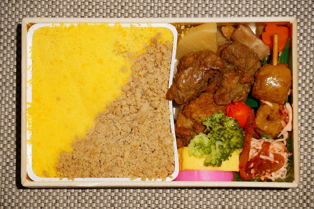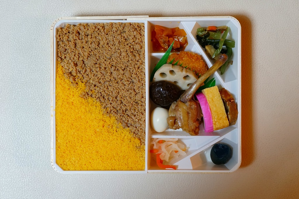 中身は鶏ガラスープで炊いた御飯に細かな鶏そぼろと卵そぼろを斜に敷いた「とり御飯」に、チキンカツ、鶏つくね、鶏照焼、鶏肉の磯辺揚、だし巻卵、うずらの卵、鶏の和え物などの鶏づくしに、かまぼこ、大根桜漬、みかん、さくらんぼ。価格は2017年時点で1,100円、2022年時点で1,150円、2023年時点で1,240円、2024年時点で1,260円、2025年時点で1,290円。