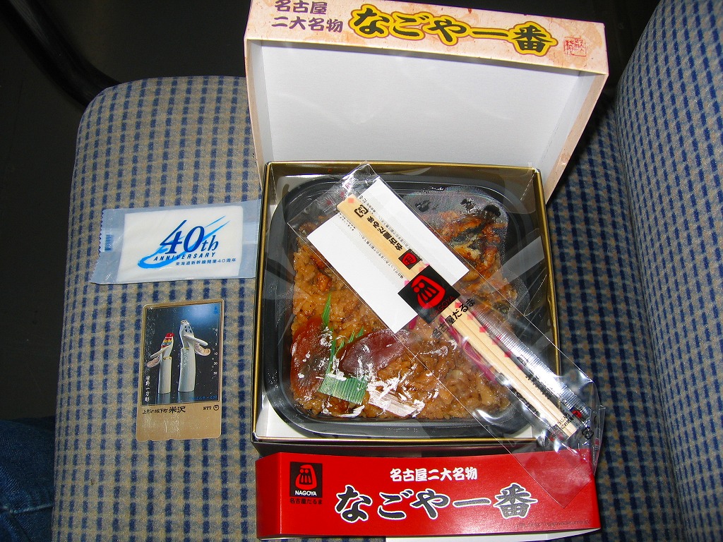 名古屋近郊の観光名所を満載したイラストを描いたボール紙の箱の中にトレーを入れる。中身は日の丸御飯に、豚ではなく鶏の味噌カツが入り、鯖塩焼や蒲鉾に玉子焼なども入れられる。2004年以降に終売か。