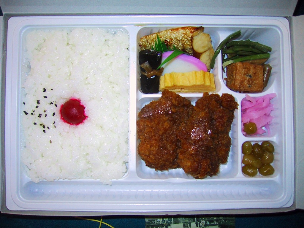 同じ形状の容器を使う他駅の駅弁は、二人前を想定して割りばしを二膳付けるが、ここのは一膳だけ。ひとりで豪快に腹へ詰め込むことが推奨されてるようだ。価格は2005年の購入時で1,550円、2014年4月の消費税率改定で1,600円、2016年時点で1,650円。2016年までの販売か。