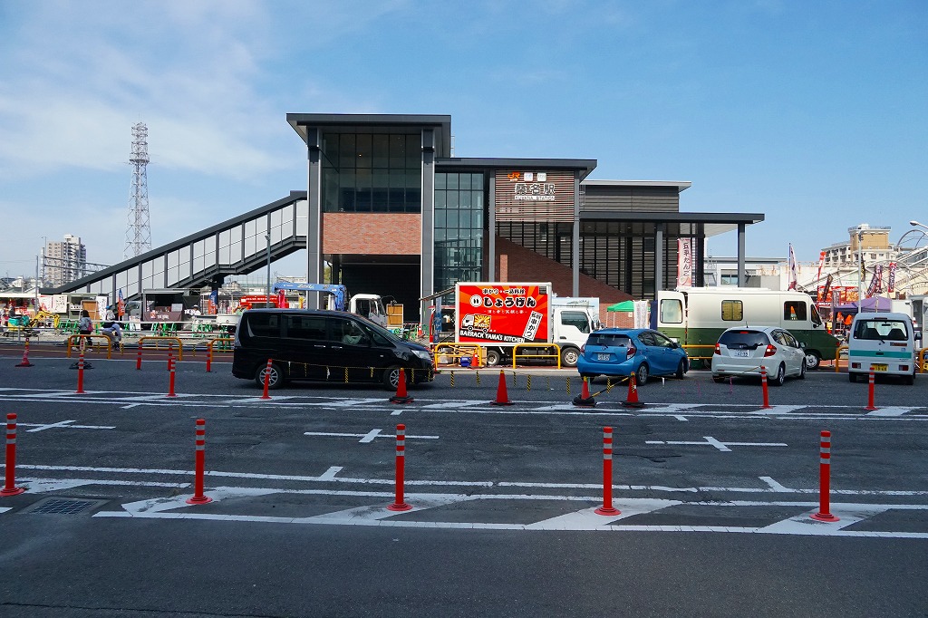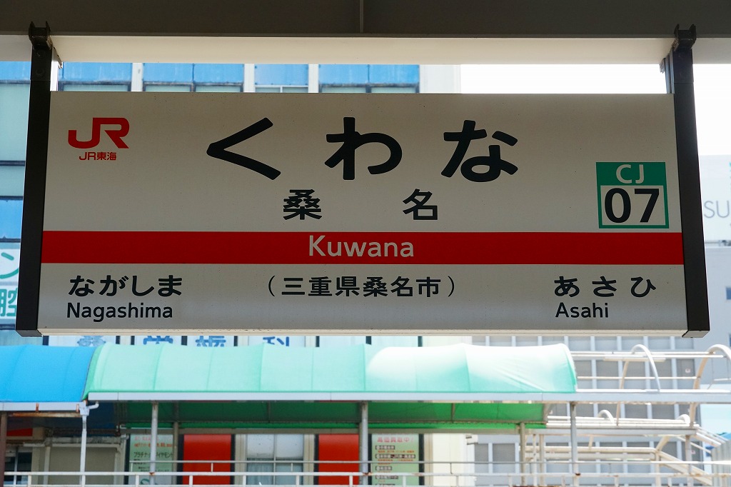 名古屋駅から関西本線でも近鉄電車でも約30分。桑名市は三重県の北端部で伊勢湾に面した、人口約14万人のベッドタウン。この木曽三川(きそさんせん、揖斐川と長良川と木曽川)の河口は、古くは海や川や陸の物流の拠点であり、交易や取引で商業が発達した。駅弁は1910年代に売られたほか、桑名名物の蛤(はまぐり)が売られたり亀山駅の駅弁に入ったりした。また、2020年に新築の橋上通路で開店した食堂が、駅弁を名乗る持ち帰り弁当を販売する。1895(明治28)年5月24日開業、三重県桑名市大字東方。