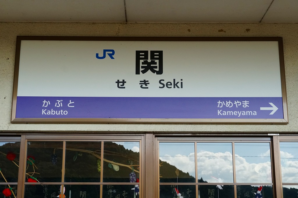 亀山駅から関西本線のディーゼルカーで1駅6分。関は東海道の宿場町であり、江戸時代の町並みがよく残されているため、1984(昭和59)年12月に国の重要伝統的建造物群保存地区に選定された。公式な駅弁はないが、駅舎代わりの亀山市施設「関宿ふるさと会館」の店舗で、関宿の名物「鈴鹿亭の巻寿司」を販売。1890(明治23)年12月25日開業、三重県亀山市関町新所。