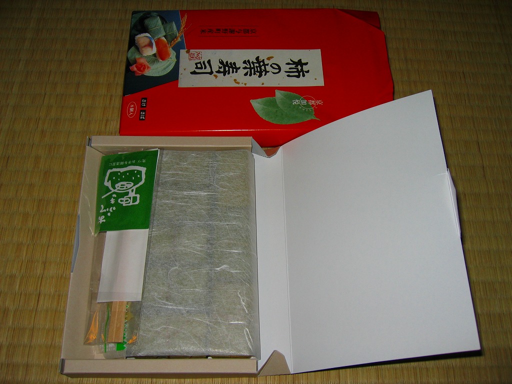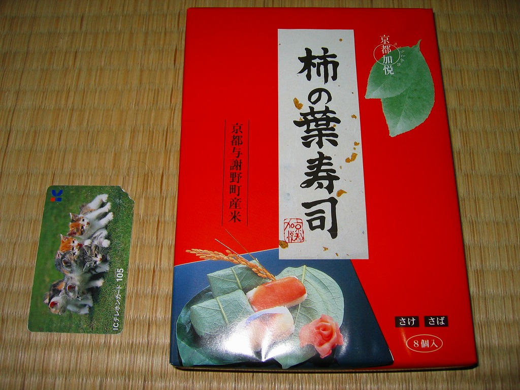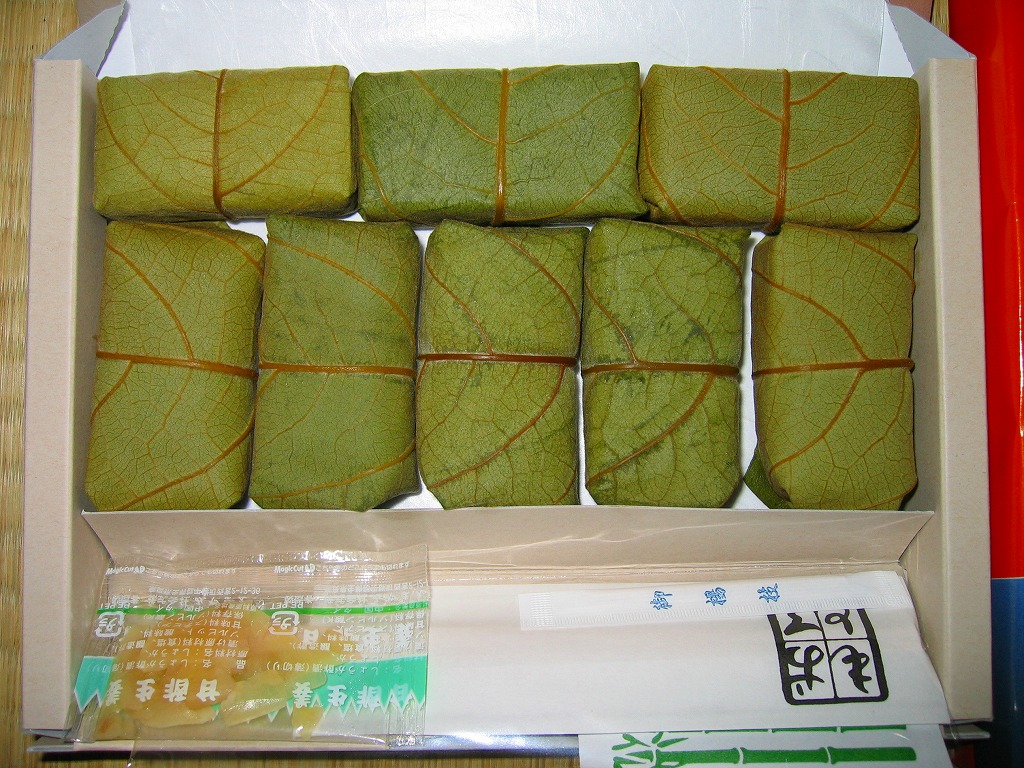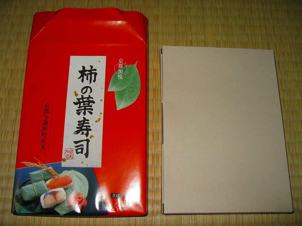 調製元は京都府加悦町、現在の与謝野町が1999年に設立した、冷凍米飯加工事業と精米事業を持つ第3セクター。玄米ごはん、焼き鯖寿司、そしてこの柿の葉寿司と、どこでも作っている商品を作る工場に補助金と交付金を何億円も注いでおり、何かコトがあればワイドショーで散々に叩かれるだろうが、地元の米をただ売るだけではなく付加価値を付け、そこに雇用も生むことそのものは、正しい地域振興の姿だとも思う。