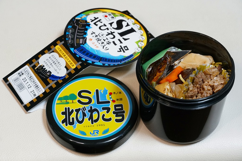 それなのにこんな駅弁が新作で出てきて、二度と走らない列車の弁当が発売されて、驚いた。今は京都鉄道博物館の中を「SLスチーム号」として行き来するC56160に、「SL北びわこ号」のヘッドマークを付けることはあるらしい。そういえば「奥久慈清流ライン号」というSL列車も走っておらず、「SLばんえつ物語」は2022年8月の水害で無期限の運休となってしまった。