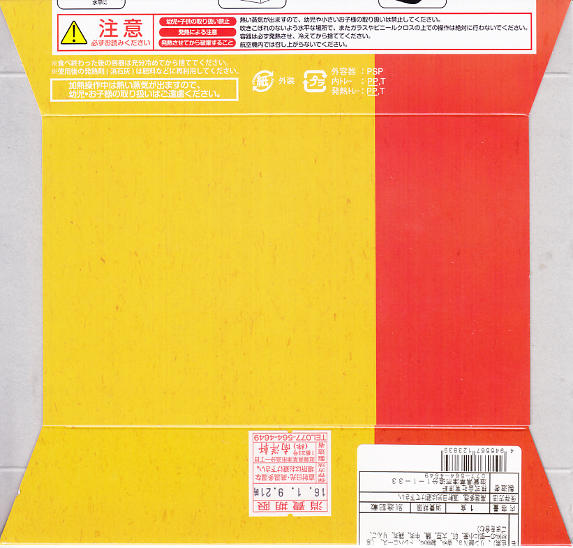 秋冬の駅弁大会シーズンに向けた、2014(平成26)年秋の新商品か。黄色いボール紙枠に収めたプラ製容器の中身は、御飯の3分の2を牛焼肉で覆い、残りをコーン、にんじん、いんげんで覆い、パイナップル、ポテトフライを添えるもの。肉は見た目でタレ満載、広げると霜降り、食べると焼肉が香る。ありふれた牛肉駅弁のひとつではあるけれど、付合せによりファミリーレストラン風にできていると思った。2018年秋冬のシーズンまでの販売か。
