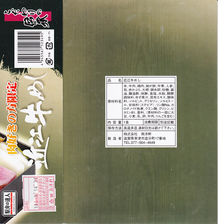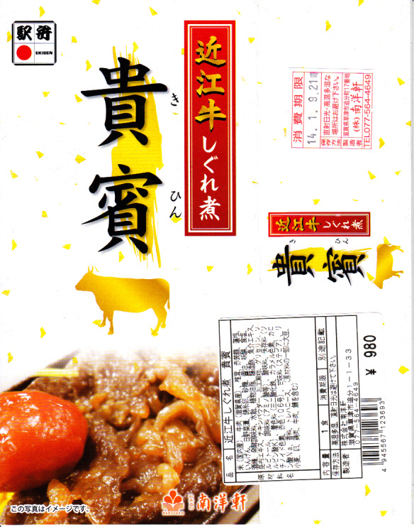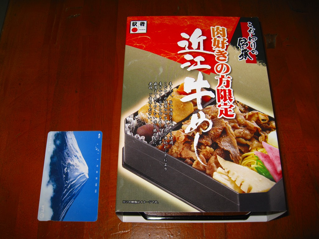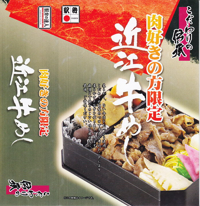 2013(平成25)年10月の発売。御飯を牛肉煮と錦糸卵で覆い、インゲン、レンコン、漬物、「永源寺蒟蒻」なる赤い玉こんにゃくを添える。つまり、駅弁でもよくある牛丼。牛肉はとても少量だが、味付けと素材、特に脂肪に甘みがあった。また、駅弁の名前と、真っ白な表面加工ボール紙を組み立てて枠を厚くした容器で、高級感を出していた。価格は2014年の購入時で980円、2017年時点で1,010円。2018年までの販売か。