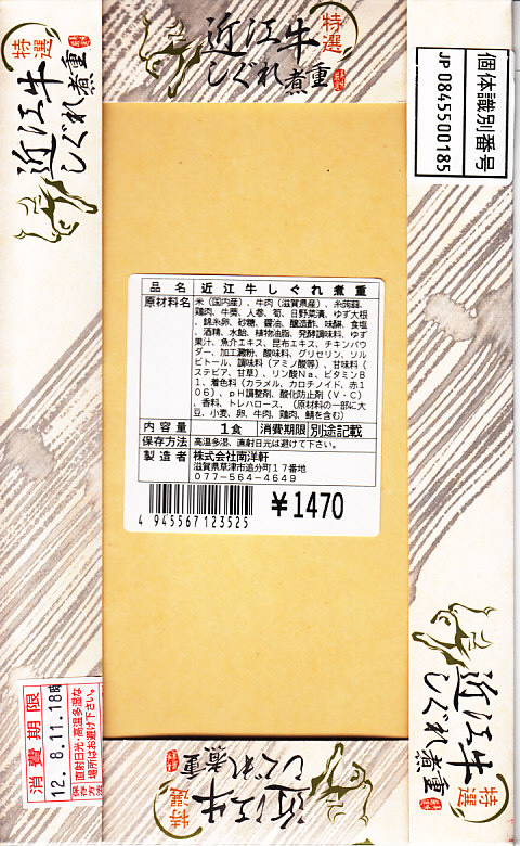 2018(平成30)年1月の京王百貨店の駅弁大会で、草津駅の復刻駅弁として販売。福井の駅弁催事業者のプロデュースのようで、実際に草津駅で売られることはないだろう。昔の草津駅弁の掛紙の絵柄を印刷した掛紙を使用、竹皮柄のボール紙の容器に収まる透明のトレーに詰めた中身は、白飯を牛肉、糸こんにゃく、たまねぎ、ネギ、錦糸卵、赤かぶらなどで覆う牛すき焼き風弁当で、「近江牛すき焼き弁当」とだいたい同じ。