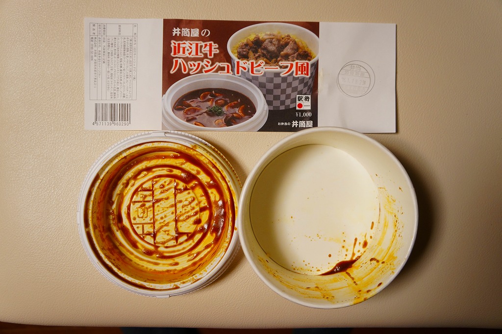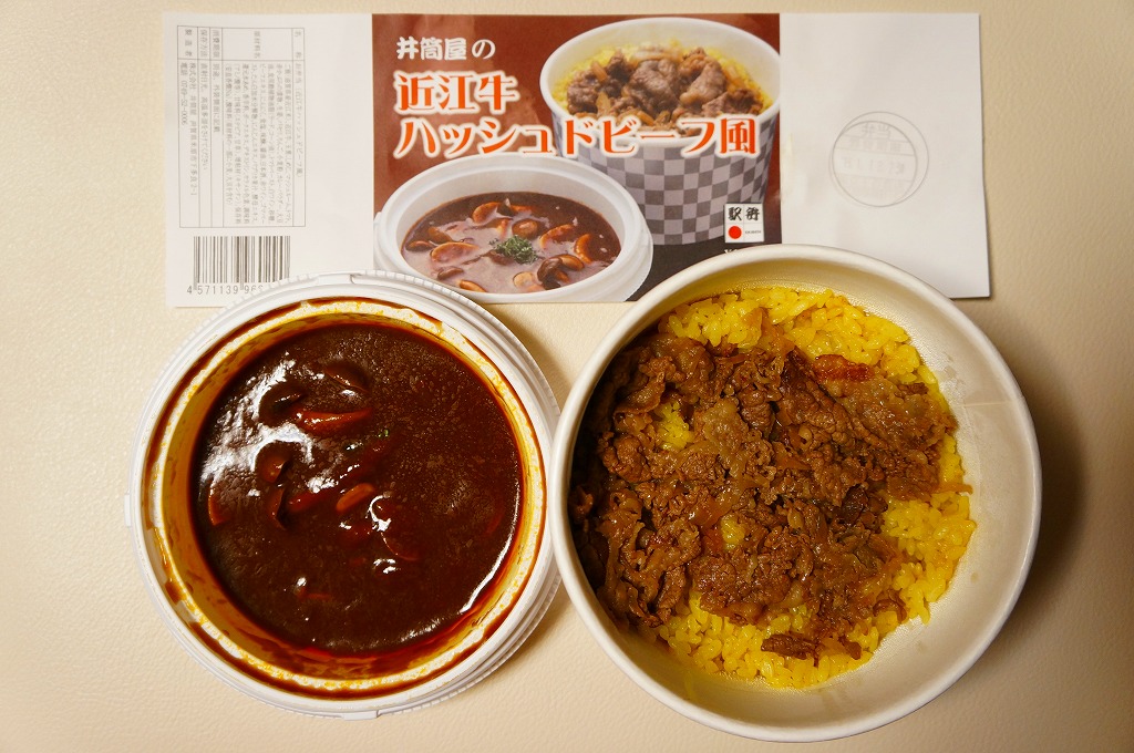 つまりこれは、米原駅弁「近江牛としょいめし」にドミグラスソースを付けたもの。確かにあの黄色い飯とにゅるにゅる牛は、食べる前でも食べた後でもソースに合うと思った。常温以下の冷たさでは油っぽくも感じられたのは、さすがに仕方がない。京王百貨店駅弁大会の他では販売されたのだろうか。