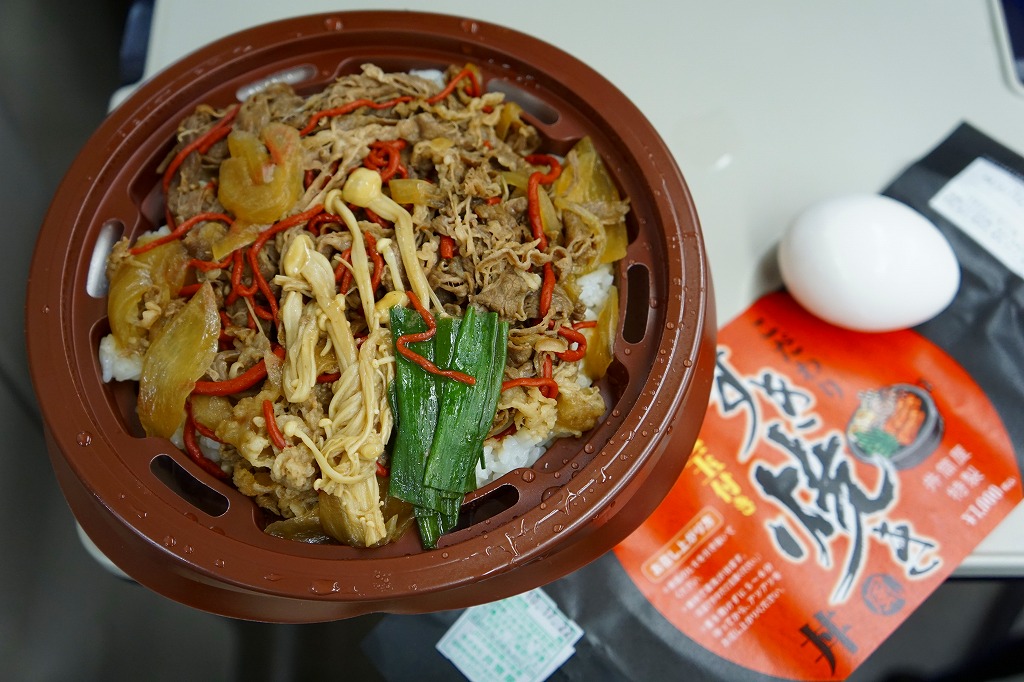 肉の分量はそれほどでもなく、肉だけの食感は筋っぽく、具で増量したように見える。しかしまとめて食べると柔らかく、熱が届かず卵が置けないほど具をたっぷり盛ってがっつりガツガツいける感じもまた増量。牛肉の駅弁は米原にも全国でもいくらでもあるので、こんな個性があってもよい。ほどなく終売か。