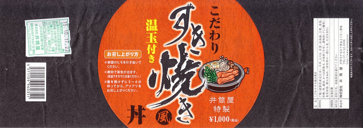 なお、2005年6月現在で、国産牛の高騰により牛肉が増量のうえ外国産に切り替わっているとか。価格は2003年の購入時で1,250、2006年10月から1,300円、2022年時点で1,400円。2022年で終売か。