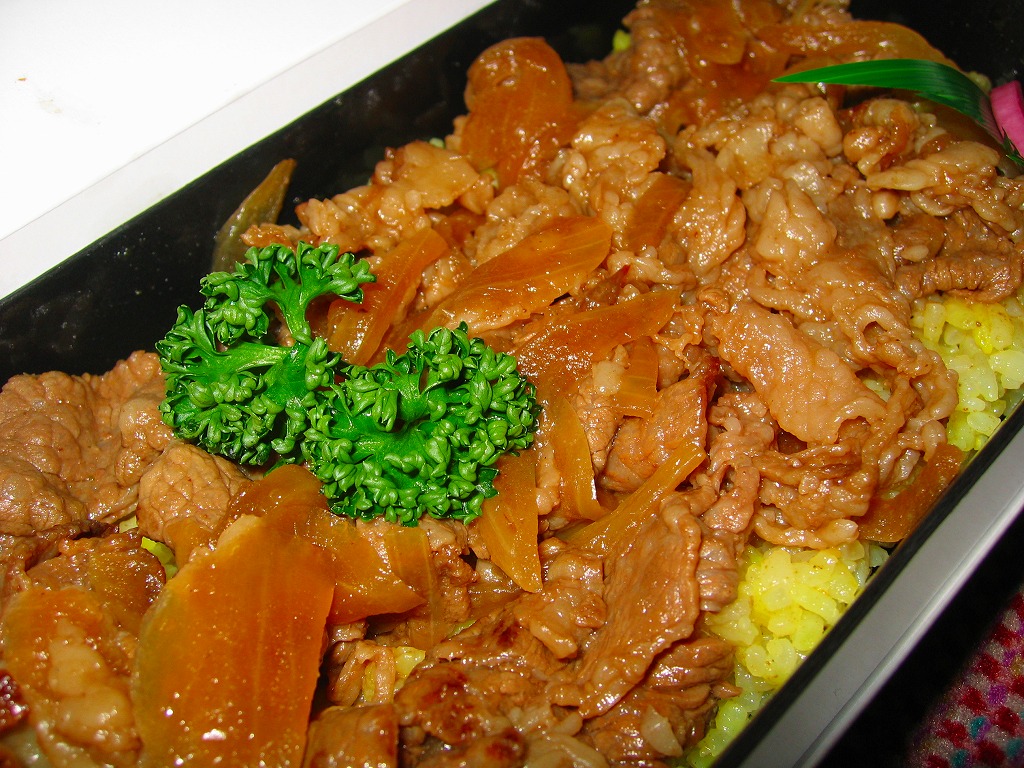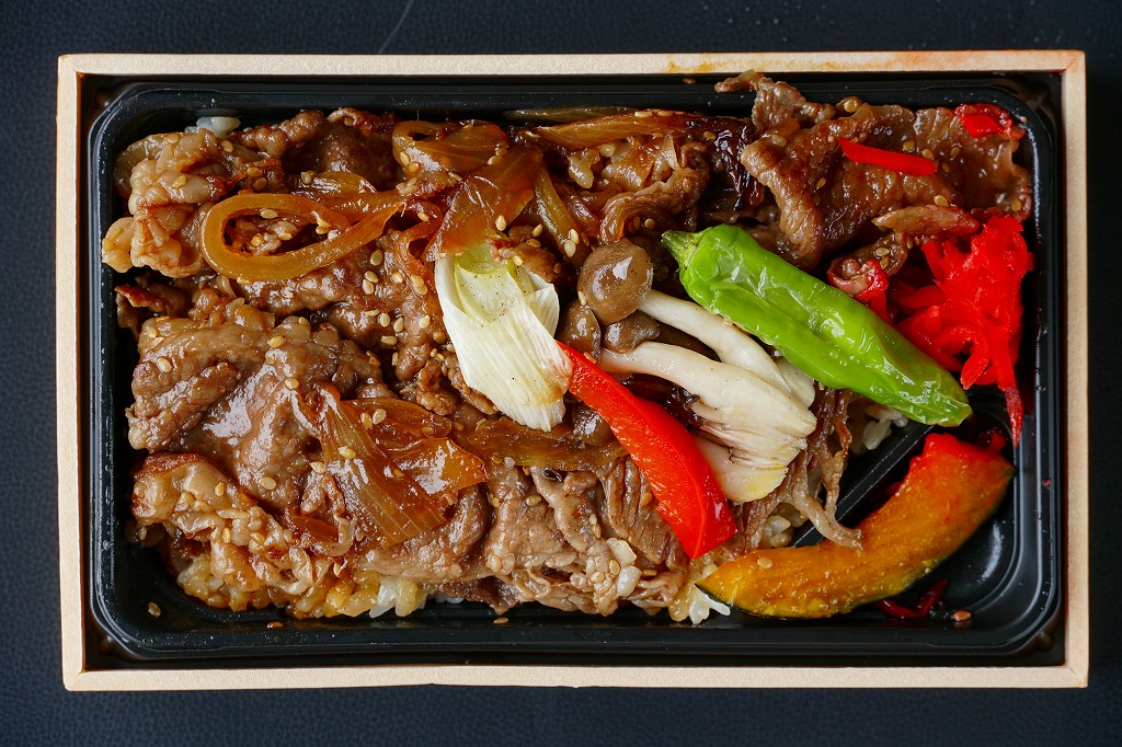 催事場での大量実演販売の弊害か、そういう商品設計になっているのか、醤油味をうたう割には薄味が過ぎてその風味はない。ステーキには米原駅弁のうまさがあるが、牛肉炒めは筋が固いだけ。同じ値段ならば従前からの「ステーキ弁当」のほうが断然に上だと感じる。
