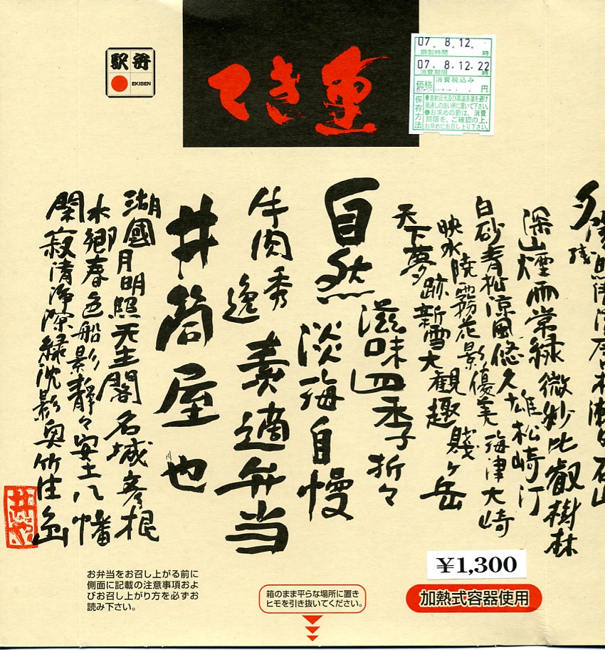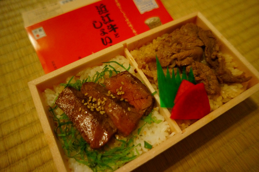 2013(平成25)年までに発売か。米原駅の牛肉駅弁の最高峰。調製元の公式サイトでは予約を推奨するが、普通の週末である訪問時には、米原駅に加えて名古屋駅でも予約なしに買えた。