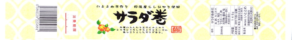 天橋立駅の売店で買えた惣菜。きゅうりと玉子焼とカニかまぼこのマヨネーズ和えを具とした太巻き寿司を4切れ、透明な惣菜容器に詰めて、商品名の掛紙を巻く。掛紙に「いととめ手作り」「丹後産こしひかり使用」とある、地元のお惣菜。調製元は京丹後大宮駅前のぼたもち店。