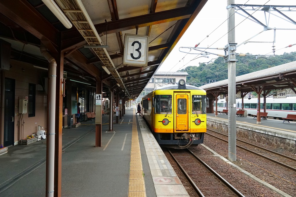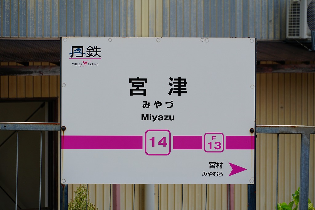 京都駅から特急列車「はしだて」で約2時間。宮津市は京都市の北部で日本海の若狭湾に面した、人口約1.5万人の城下町。古くは丹後国の中心であり、江戸時代に北前船の港町であったり丹後国宮津藩の宮津城に様々な城主が入り、近代にニッケル鉱山が立地し、今は天橋立の観光が盛ん。駅弁は第二次大戦中に存在したらしいほか、1970年代から1990年代までは西舞鶴駅の駅弁が売られた。以後に公式な駅弁の販売はないが、観光列車「丹後あかまつ号、丹後あおまつ号」の乗客に限り駅で受け取れる予約制の弁当「えきべん」がある。1924(大正13)年4月12日開業、京都府宮津市字鶴賀。