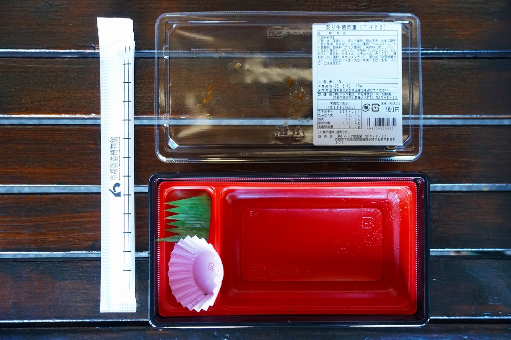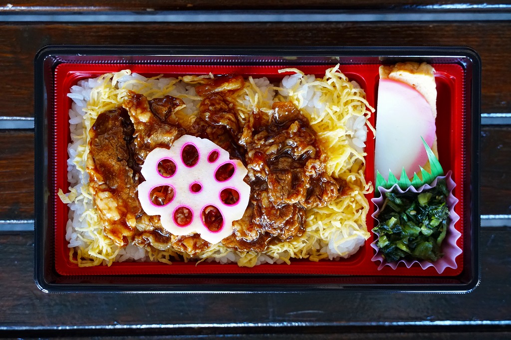 2021(令和3)年までに京都鉄道博物館で発売か。白飯を錦糸卵で覆い、タレたっぷりの牛焼肉で覆い、花れんこん、かまぼこ、玉子焼、野沢菜漬を添える。掛紙その他包装も特徴も何もない、駅弁らしさも京都らしさもない、まるでスーパーの惣菜弁当。しかし館内で弁当が買えるのはここだけで、ここも食堂も供給不足で行列ができる状況なので、これもよく売れていたようにみえる。施設の性格上、入館者にはお弁当を作って持ち込む家族連れも少なくない。営業事業者の変更により2024年8月限りで終売、9月からは神戸の駅弁が売られる。