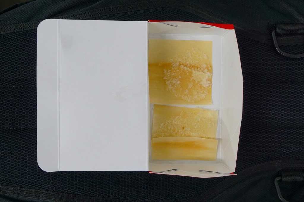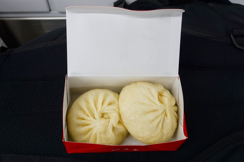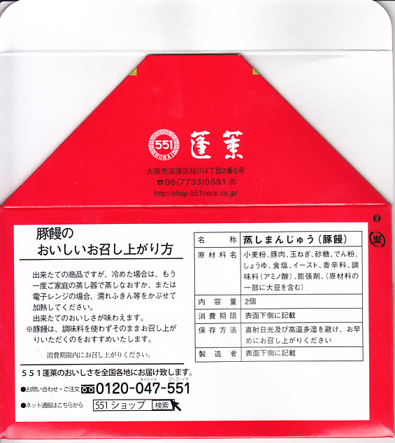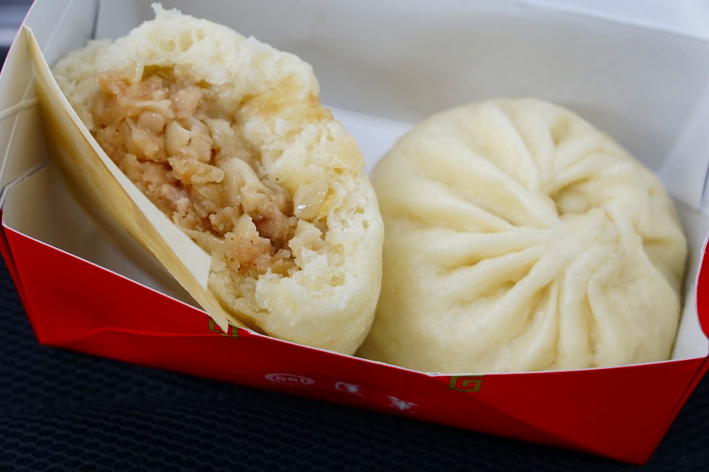 甘くてとても厚い皮の中に、豚肉とタマネギだけで脂と油が豊かな中身がたっぷり詰まる肉まんじゅう。日本中のコンビニで売られる肉まんの倍量はあると思うので、2個も食べれば腹を満たす。これは2個入りで340円。同じ単価で4,6,10個入りもある。価格は1990年代で一個あたり130円、2005年時点で140円、2008年4月に160円、2014年に170円、2019年4月に190円、2022年9月に210円、2023年9月に240円と、じわじわと上がってきているが、それでもまだ安価なもので、横浜や神戸の中華街のものは倍額以上する。