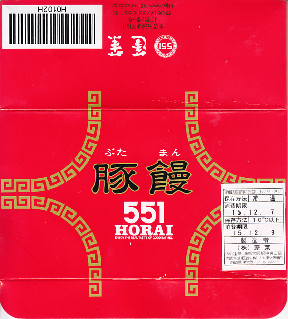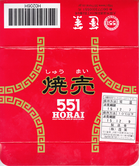 御存知、551蓬莱の小さいほうの焼売。写真は8個入りだが、他の個数のパッケージもある。京都駅や新大阪駅などの駅構内にも売店があるので、駅弁と同じ用途で使う方も多いと思うし、横浜のシウマイと同じように土産物にも用いられるし、冷凍品や真空パックでない商品が遠隔地に出てこないことも似ている。2010年頃に終売か。ときどき再販するようで、近年では2020年10月、2021年3月、2023年3月と10月に発売の発表がされた。