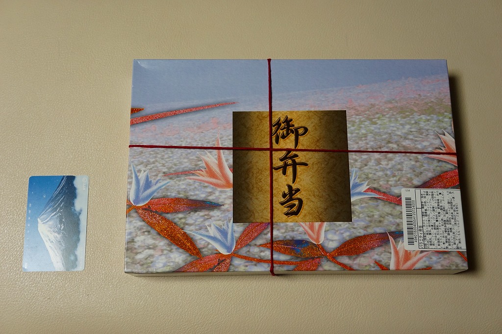 2021(令和3)年の年末までに発売か。掛紙で竹籠と言い張る、竹皮の絵柄を印刷したボール紙の容器に、五目御飯をじかに詰め、鶏照焼、れんこんとサトイモとにんじんと椎茸の煮物、玉子焼、鶏つくね、小松菜、くり、ひじきなどを散らして覆う。やはり掛紙では幕の内と言い張るが、これは鶏飯だろう。なかなか値の張る、きれいでおいしいお弁当。価格は2022年の購入時で1,290円、2023年時点で1,350円、2024年時点で1,380円、2025年時点で1,390円。