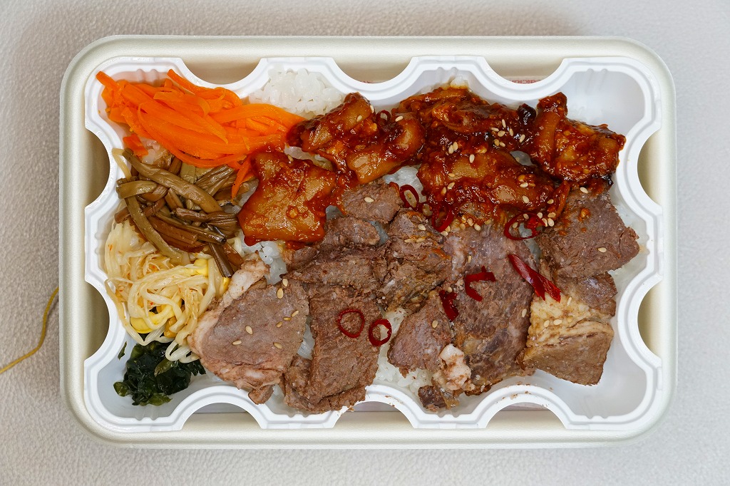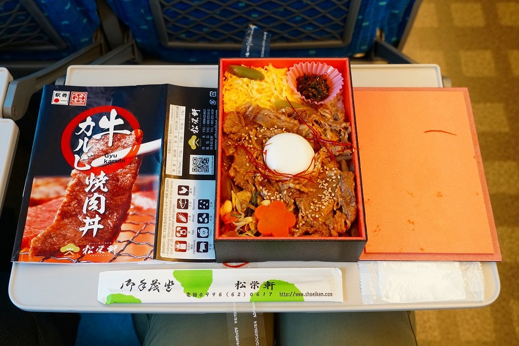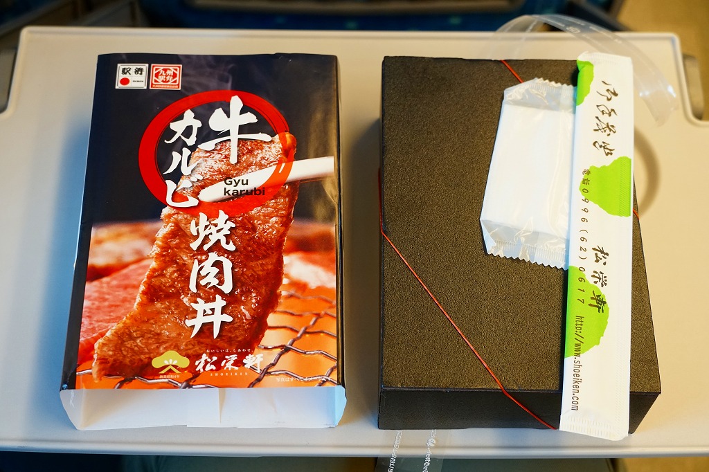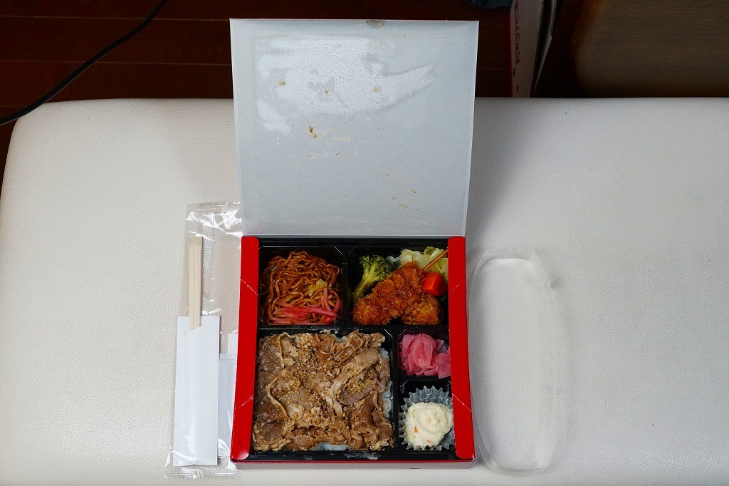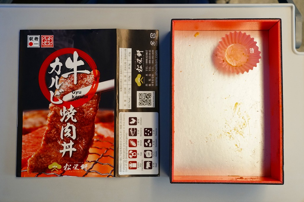 外が黒く中が赤い長方形の容器の全面に茶飯を詰め、牛焼肉、錦糸卵、ナムル、高菜漬で覆い、半熟ゆで卵風の加工卵を据える。そんな姿と内容は、焼肉の写真が美しい黒地の掛紙を含め、過去に駅弁の催事や輸送販売で何度も見たり食べたりしたような、既視感の塊。大阪などの関西や鹿児島の味ではないと思う。870円で買えるのならば、お得だとは思う。半年間ほどの販売か。