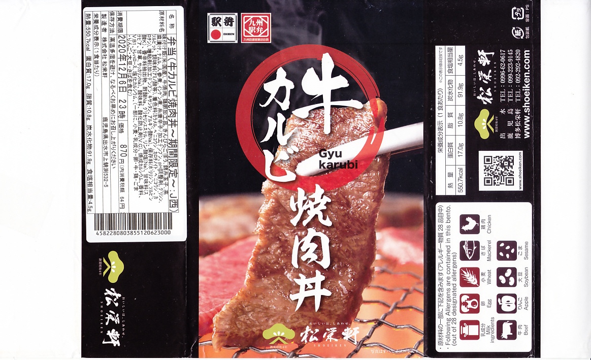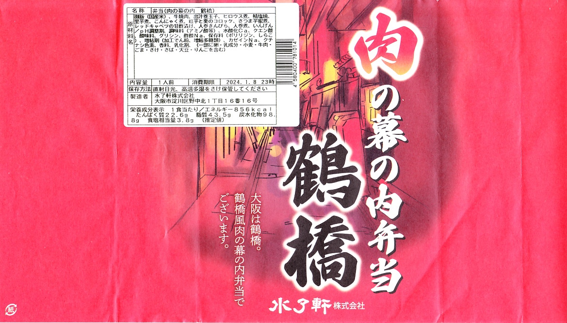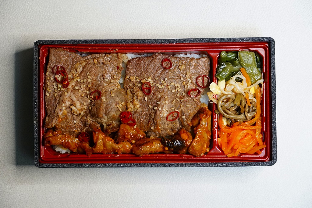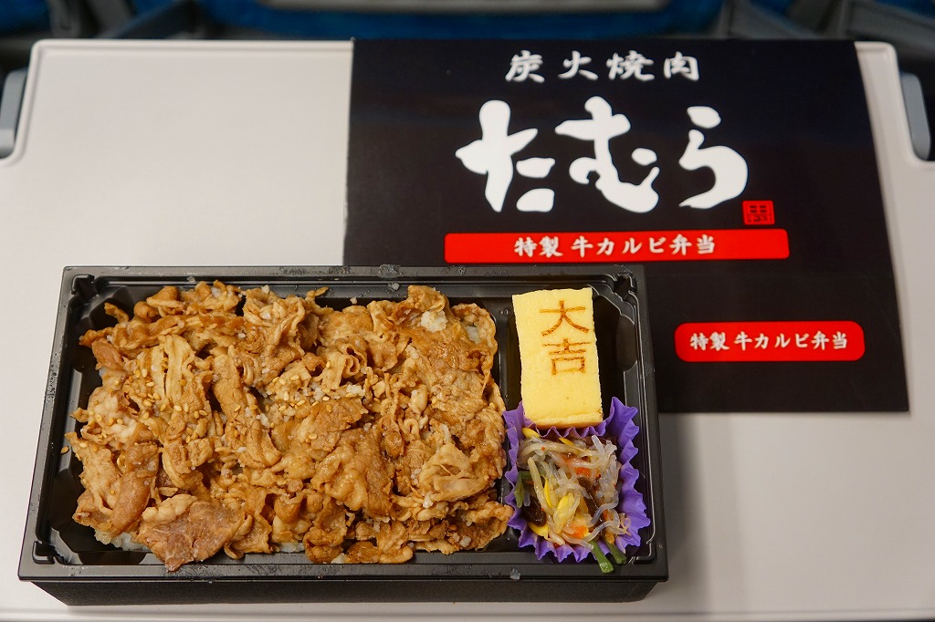 2022(令和4)年の秋までに新大阪駅などで発売か。昭和時代の並等幕の内駅弁のようなサイズの折箱で、白飯を詰めて牛焼肉で覆い、焼サバ、玉子焼、コロッケ、サトイモやニンジンなどの煮物、赤キャベツの甘酢漬け、ニンジンきんぴら、さつまいもを詰める。幕の内駅弁を焼肉で煙る鶴橋に持っていけばこうなるのだ、と語ってきそうな商品名と掛紙の絵柄と内容を持つ、おかずの多い焼肉弁当。