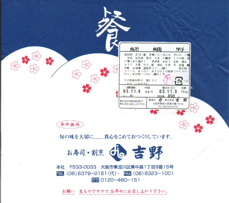 2003年1月21日に京王百貨店の駅弁大会で購入 Jan. 21, 2003