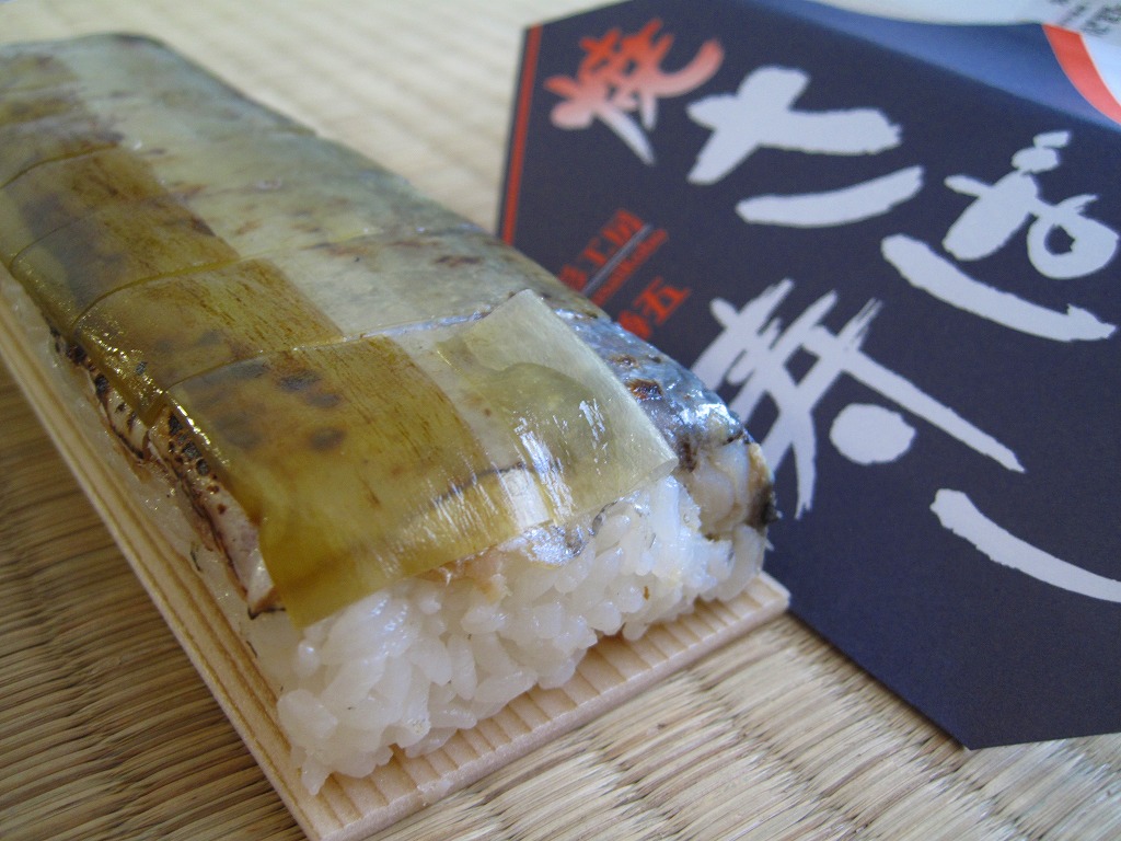 これは駅弁でなく、明石海峡大橋の淡路島側に位置する淡路サービスエリアで販売されていた土産物。板昆布と笹の葉を貼り大葉と生姜を混ぜた焼サバ寿司が1本、ビニール袋に密封されて市販の白い紙箱に収まり、商品名とブランド名を書いた掛紙が巻かれる。食品表示によると高速道路の商品としては珍しく地元で製造されているようであるが、油漬けでべたべたした残念な印象。調製元は江戸時代創業の海産物卸問屋。