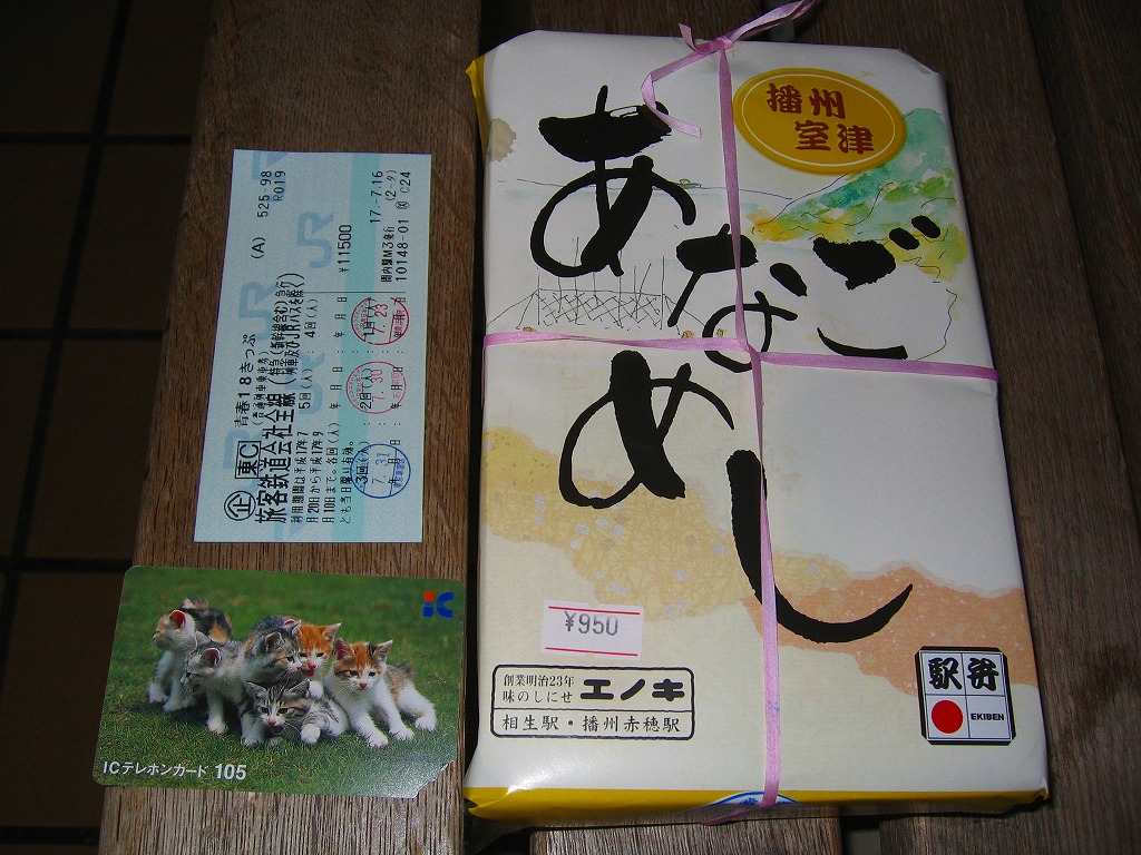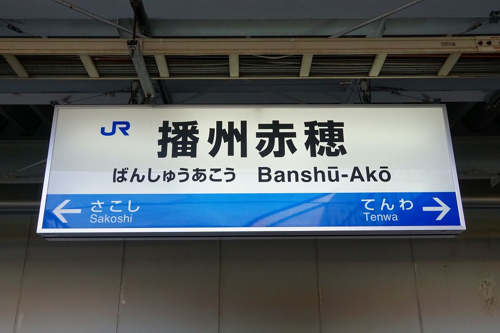 新大阪駅から新快速電車で2時間弱。赤穂市は兵庫県の南西端で瀬戸内海に面する、人口約5万人の城下町。赤穂藩2万石ないし5万石の城下町、北前船の港町、牡蠣の産地、そして江戸時代から昭和時代まで塩田で栄えた。江戸時代の赤穂事件に基づく仮名手本忠臣蔵で、国内で広く知られる。駅弁は国鉄時代からの駅弁屋が2007年11月に倒産し、現在は売られていない。1951(昭和26)年12月12日開業、兵庫県赤穂市加里屋。