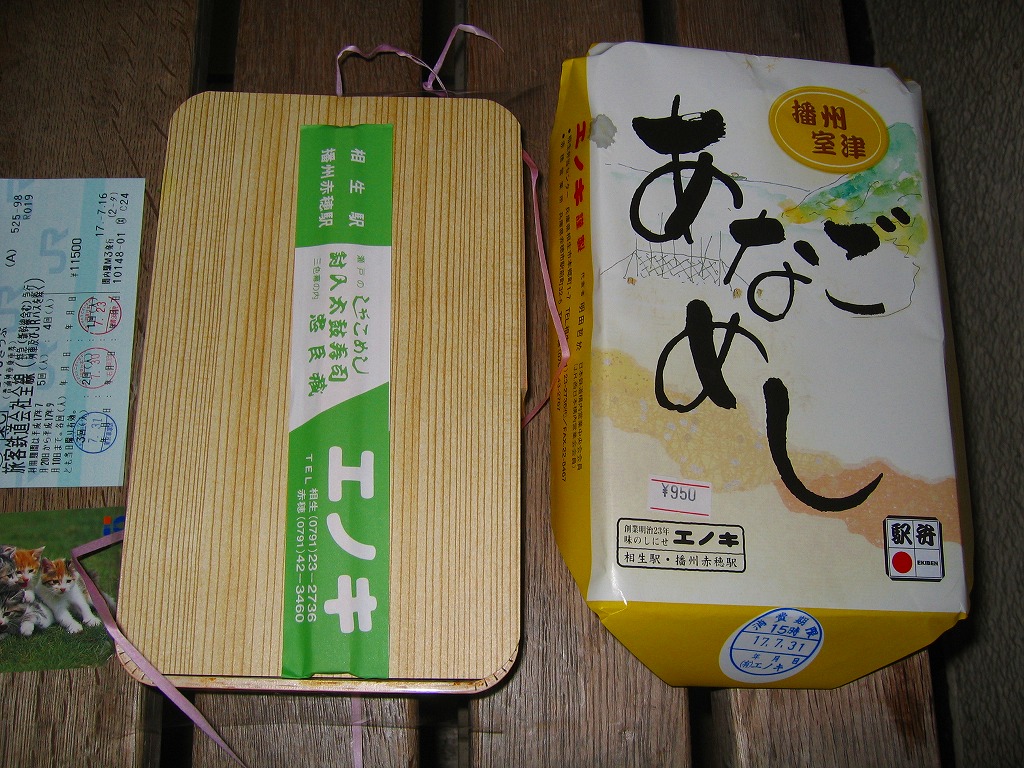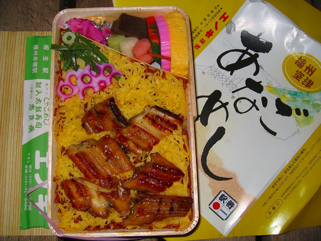 薄手の穴子はタレと焼きで香ばしく、見栄えも味もコンセプトも良い駅弁。能書きが垂れてあればなお良かった。播州赤穂駅と相生駅の駅弁では、ナンバー2の存在。2004年度のJR西日本の駅弁キャンペーン「駅弁の達人」の対象駅弁。