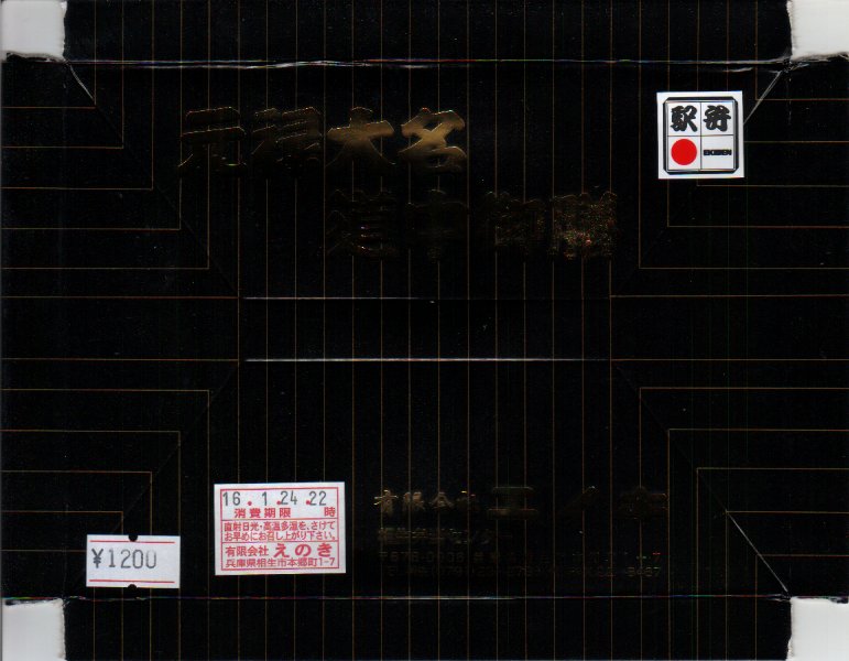 注文先の駅弁図鑑によると「松の廊下の異変と、それに続く主君切腹家名断絶の一大事を、二組の使者が早駕篭で急報した道中弁当を摸した作品」だそうな。ここの忠臣蔵関係の駅弁はすべて、そんなストーリーが付いてきて、しかし駅弁だけを見てどこまで気付くかどうか。