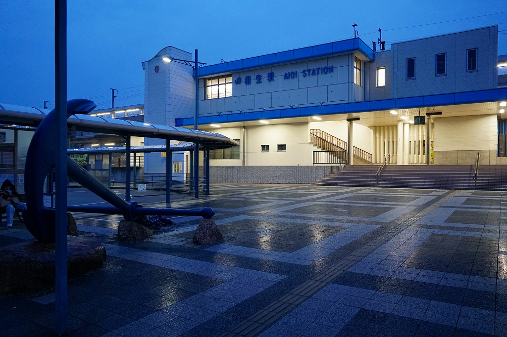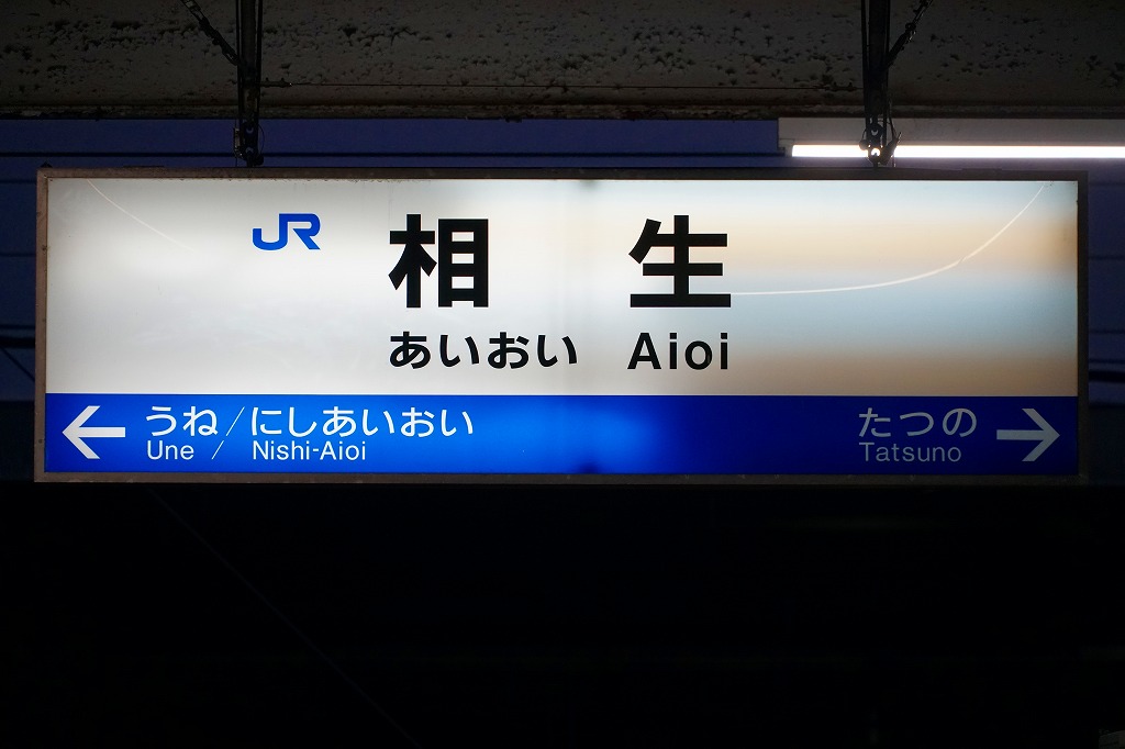 新大阪駅から新幹線で約1時間または新快速で約1時間半。山陽新幹線と山陽本線が接続し、赤穂線を分ける駅。相生市は兵庫県南西部に位置する、人口約2.6万人の工業都市。播摩造船所の企業城下町として栄えたが、1970年代の石油危機以降は衰退が続く。駅弁は明治23年に創業したという国鉄時代からの駅弁屋が2007年11月に倒産し、以後は売られていない。1890(明治23)年7月10日開業、兵庫県相生市本郷町。