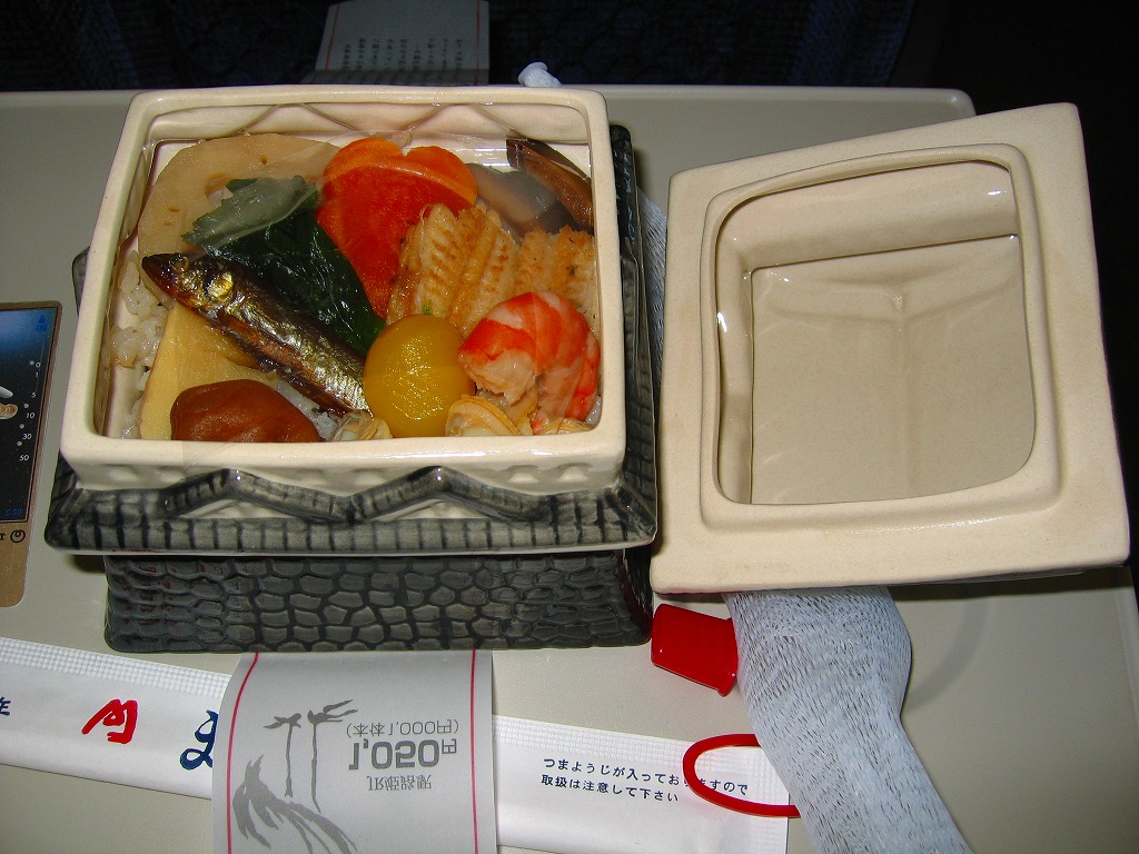 中身は黒い下段が鯛飯、緑の中段と赤い上段は松花堂弁当のように4区画に仕切られ、白身魚フライ、大根なます、ひじき煮、黒豆と鶏照焼と野菜さつま揚げ、がんもどきとれんこんとこんにゃくの煮物、小松菜漬、さば塩焼きとカニ風味かまぼこ、姫路城型ニンジンと金平ごぼう。中身と姫路や姫路城の関連はよくわからなくても、おかずの品揃えの豊富さと、出汁が豊かな鯛飯が印象的。年内で終売か。