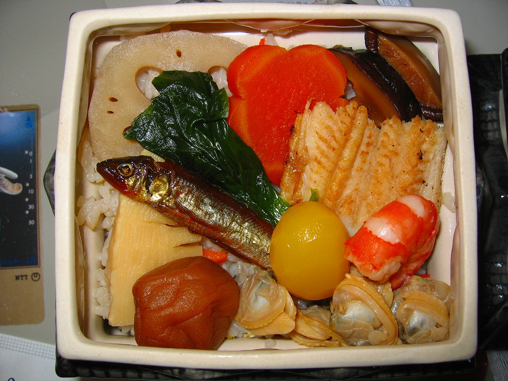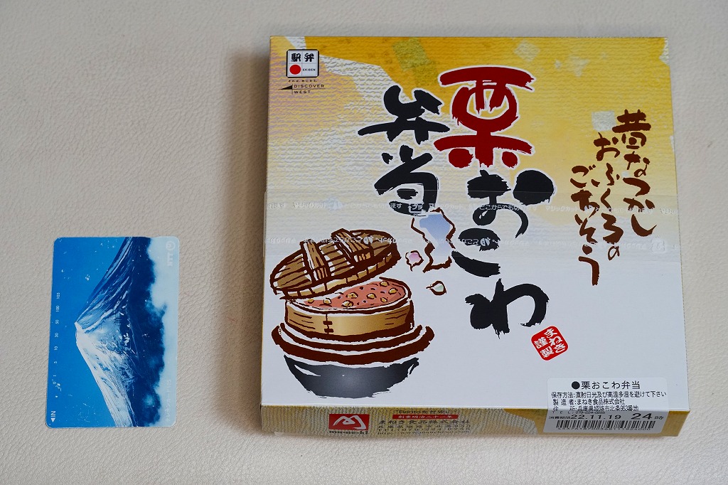 1990年代までには発売か。姫路駅弁のロングセラー。正方形の容器を対角線に区切り、半分で赤飯に小さな栗をチラシ、残りの半分で筑前煮と肉団子、残りに焼サバ、玉子焼、花豆、かまぼこ、しば漬。「栗おこわ」なのに赤飯を使うのは岡山駅の駅弁と同じで、ここでも郷土料理なのだろうか。価格は2003年時点で750円、2014年時点で810円、2016年時点で850円、2019年時点で880円、2022年時点で920円、2024年時点で1,060円。