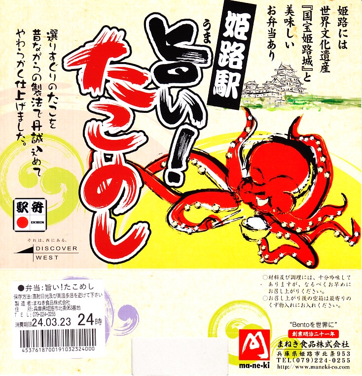 2000年代に姫路駅で発売か。楕円形の容器にだし飯を詰め、タコ煮のスライスと錦糸卵で覆い、煮物を添える。タコ駅弁の筆頭である西明石駅「ひっぱりだこ飯」や、タコ駅弁の元祖である三原駅「珍辨たこめし」や、かつての高松駅「たこ飯」とは違い、知名度がなく、2000年代には明石ダコの使用をうたったタコの身と味に締まりがなく、駅弁催事に出てこない。だし飯の柔らかな食感と風味も手伝い、柔らかいタコをたっぷり食べさせてくれる印象を受ける、唯一無二のタコ駅弁。タコの駅弁そのものが珍しい存在なので、比べる相手もこれくらいしかいない。価格は2010年時点で930円、2014年時点で1,000円、2019年時点で1,100円、2022年時点で1,150円、2024年時点で1,180円、2025年時点で1,250円。