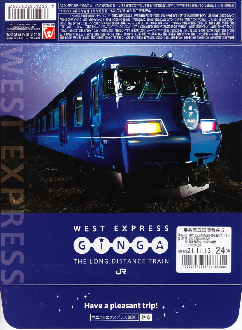「WEST EXPRESS 銀河」については、松江駅の駅弁「「銀河」一番星」の稿で紹介。報道等によると、利用者は中高年男性の一人旅がほとんどで、若者や女性やグループはみられないという。日本旅行の専用サイトの応募フォームで申し込まなければならない、抽選に当たらないと買えない商品だと、1990年代までに国内で高級でない夜行列車に親しめた世代で、またそんな夜行列車に乗りたいという人が、奮って応募するのだろう。