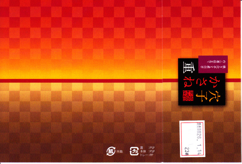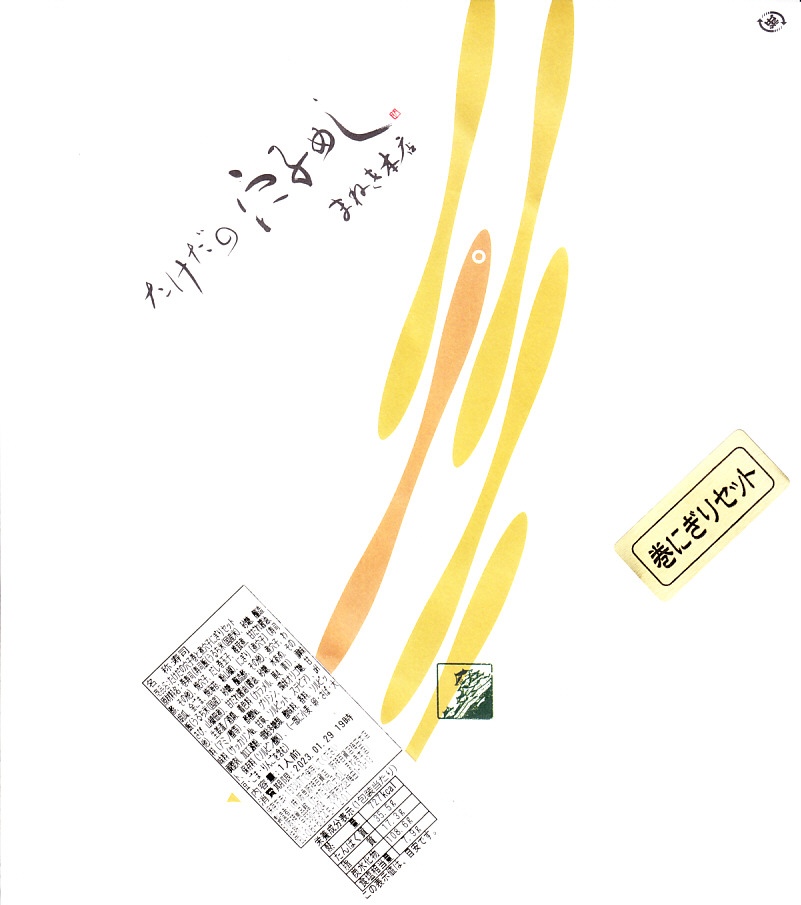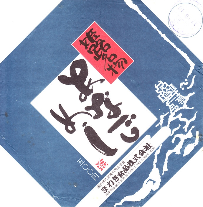 入手状況から1994(平成6)年10月20日の調製と思われる、昔の姫路駅弁の掛紙の一部。四半世紀後の同じ名前と中身の駅弁に、この文字と絵柄がそのまま使われる。